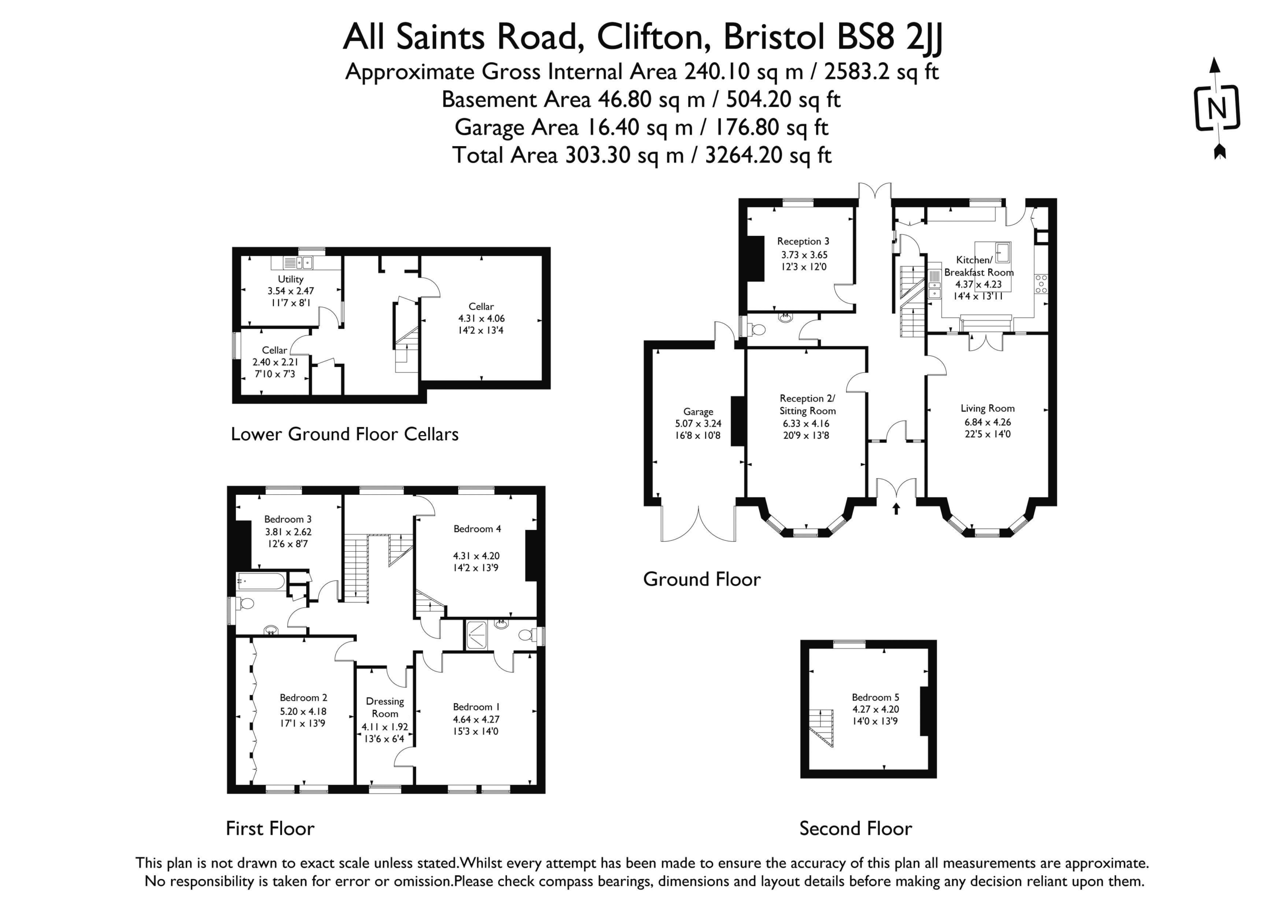 - 5 double bedrooms (1 with en-suite and dressing room)