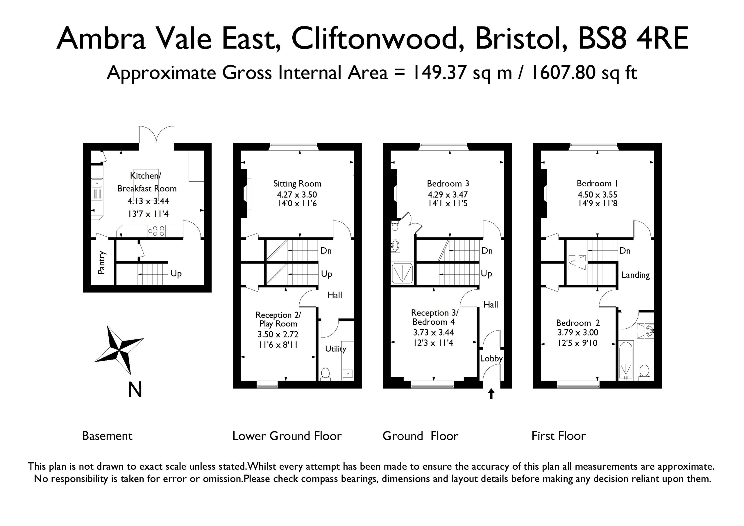 with staircase continuing down to the basement level and doors leading off to the sitting room, reception 2/playroom and shower room/wc.