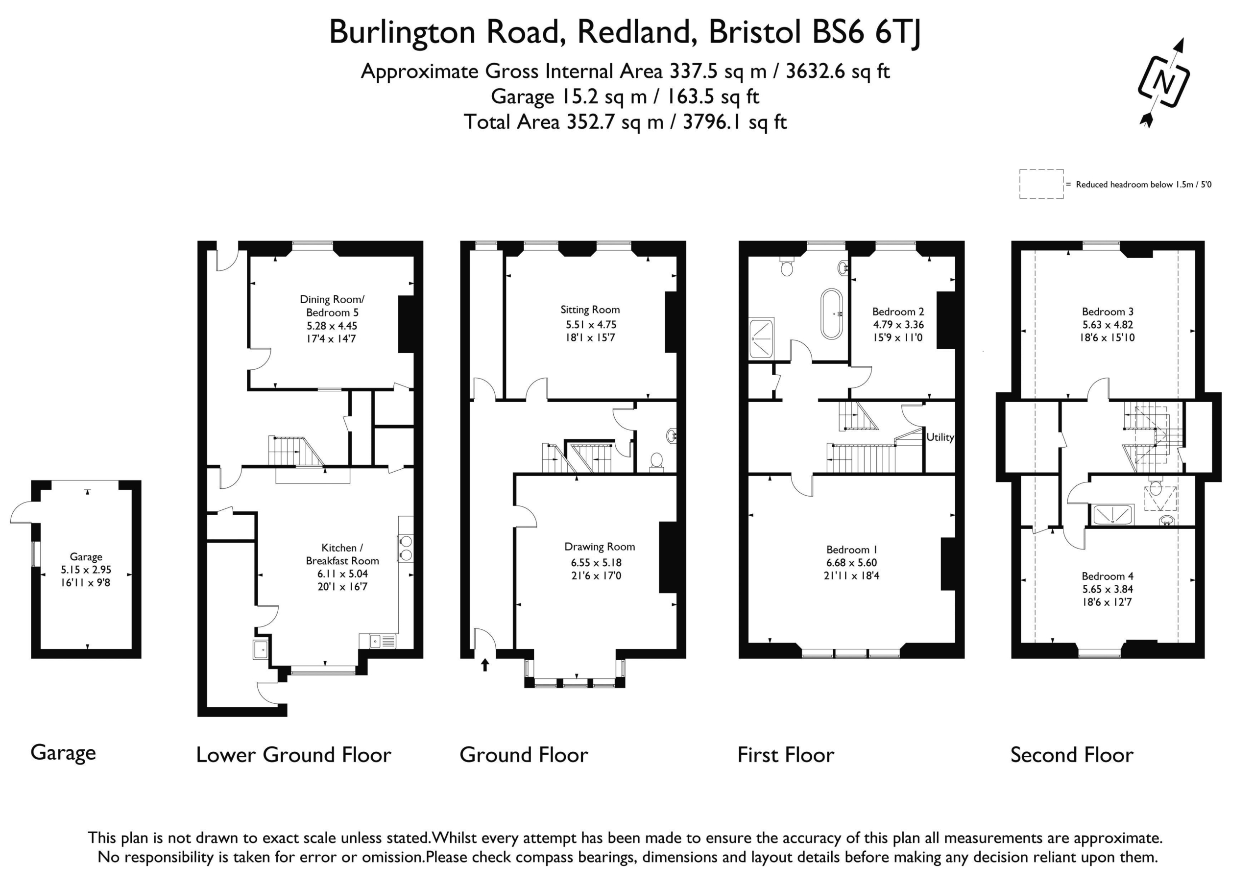 accessed internally via both the lower ground floor hall and sitting room. Immediately to the rear of the house there is a sunken patio with space for table and chairs and useful garden store. The remainder of the garden is walled and designed for ease of maintenance, being stone paved, ample space for garden furniture, potted plants and barbequing etc. Deep level borders to either side having an assortment of fruit trees including damson, pear and greengage. Pedestrian gate onto Lower Redland Road.