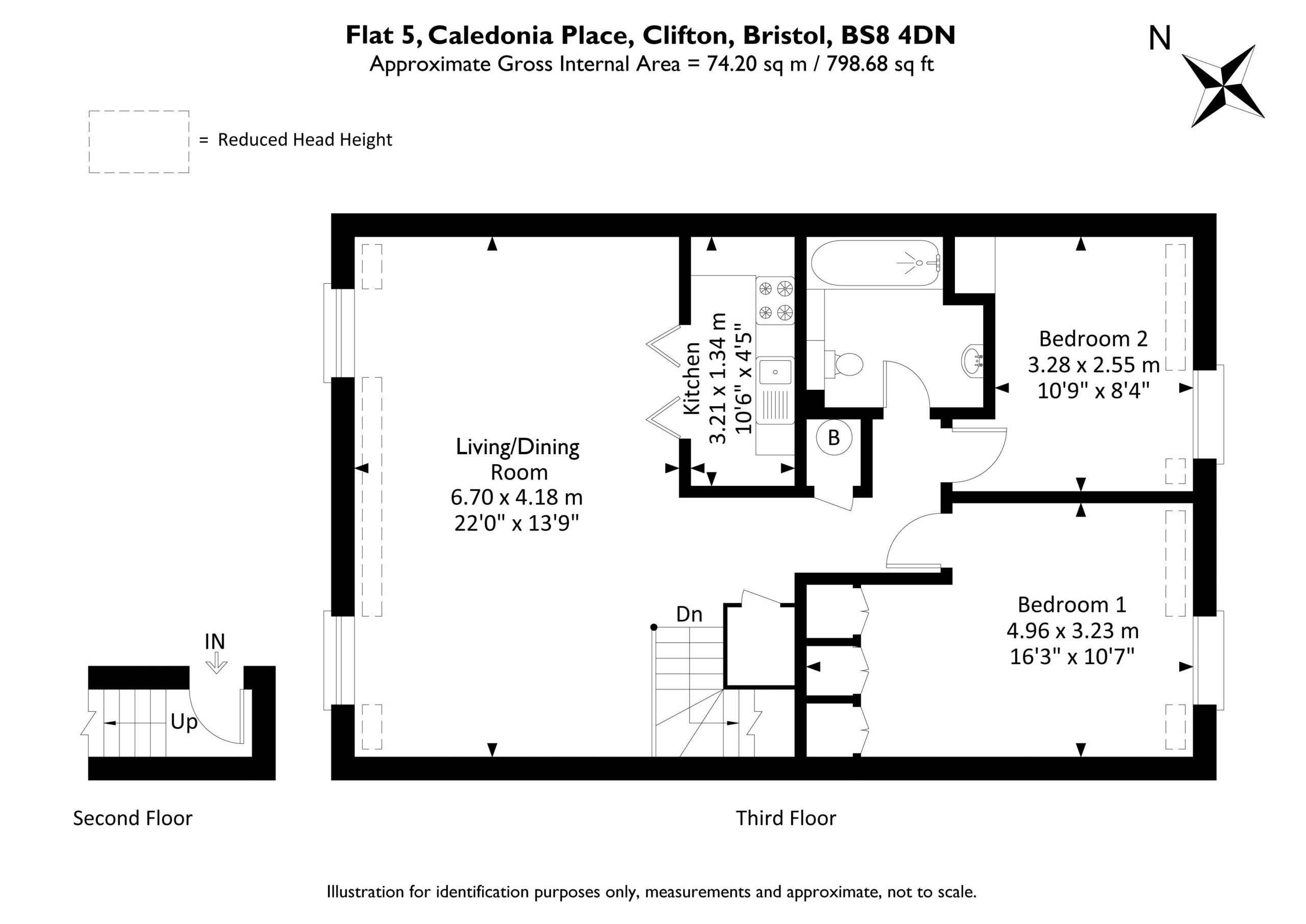 from the pavement of Caledonia Place proceed up the pathway where the large period communal entrance door can be found immediately in front of you.