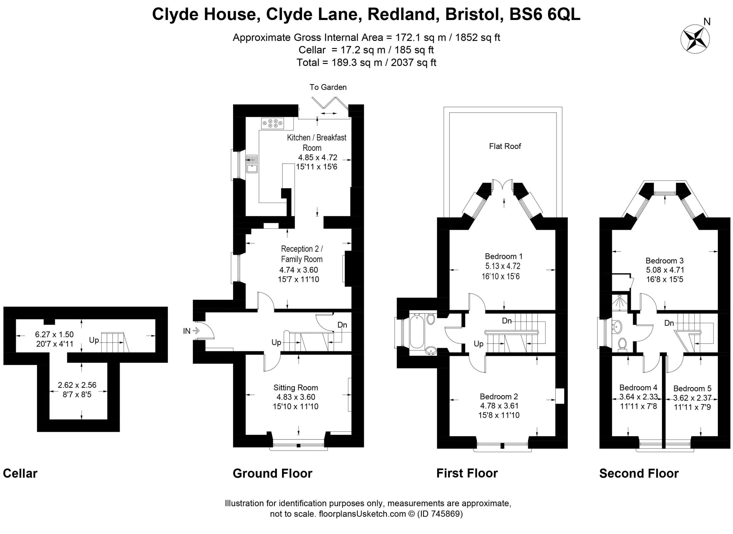 Second Floor: landing with loft hatch, bedroom 3, bedroom 4, bedroom 5 and modern shower room/wc.
