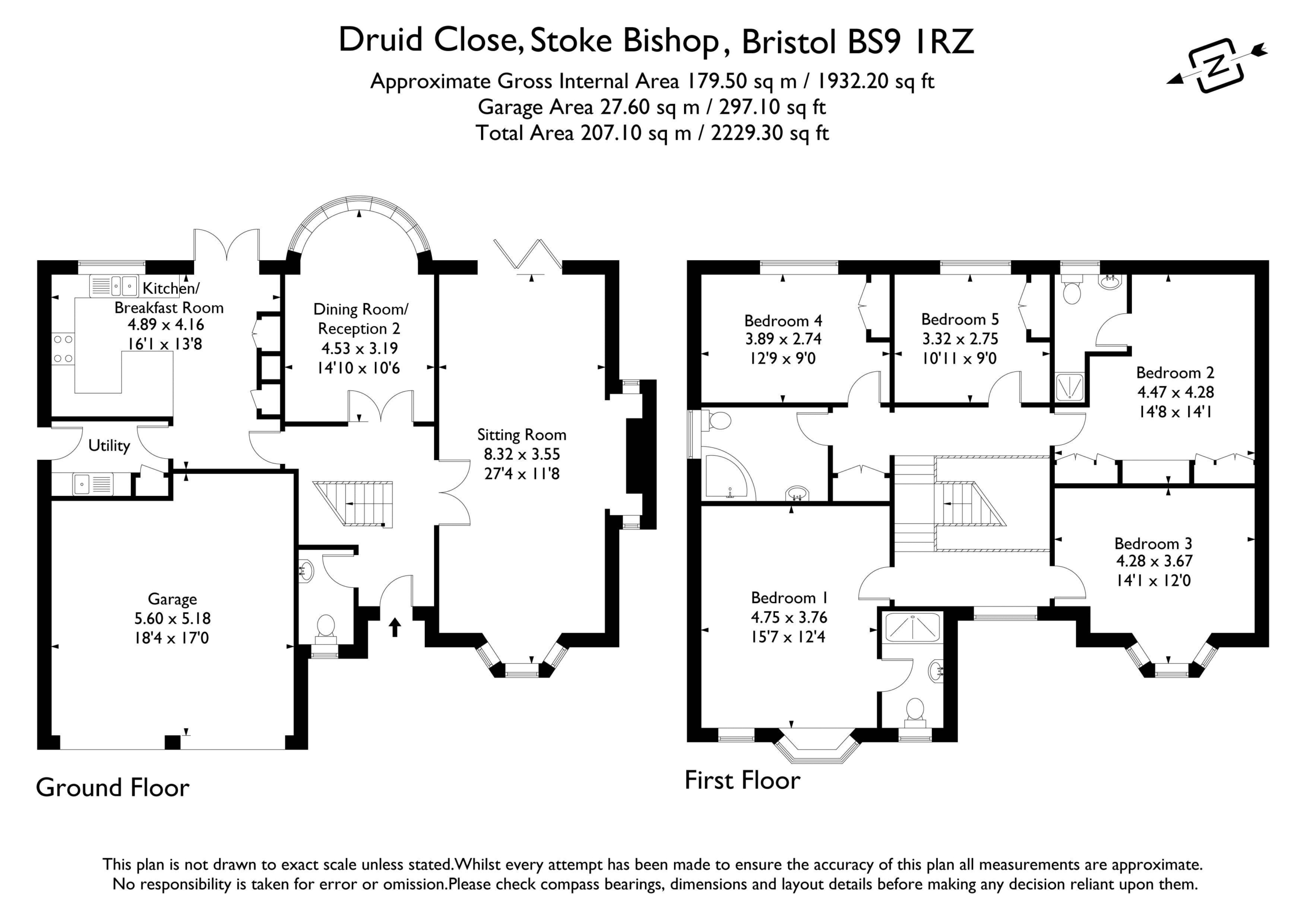 Ground Floor: central entrance hallway, 27'4 x 11'8 sitting room with bi-folding doors accessing the rear garden, separate dining room/reception 2, kitchen/breakfast room also accessing the rear garden, utility room and ground floor cloakroom/wc.