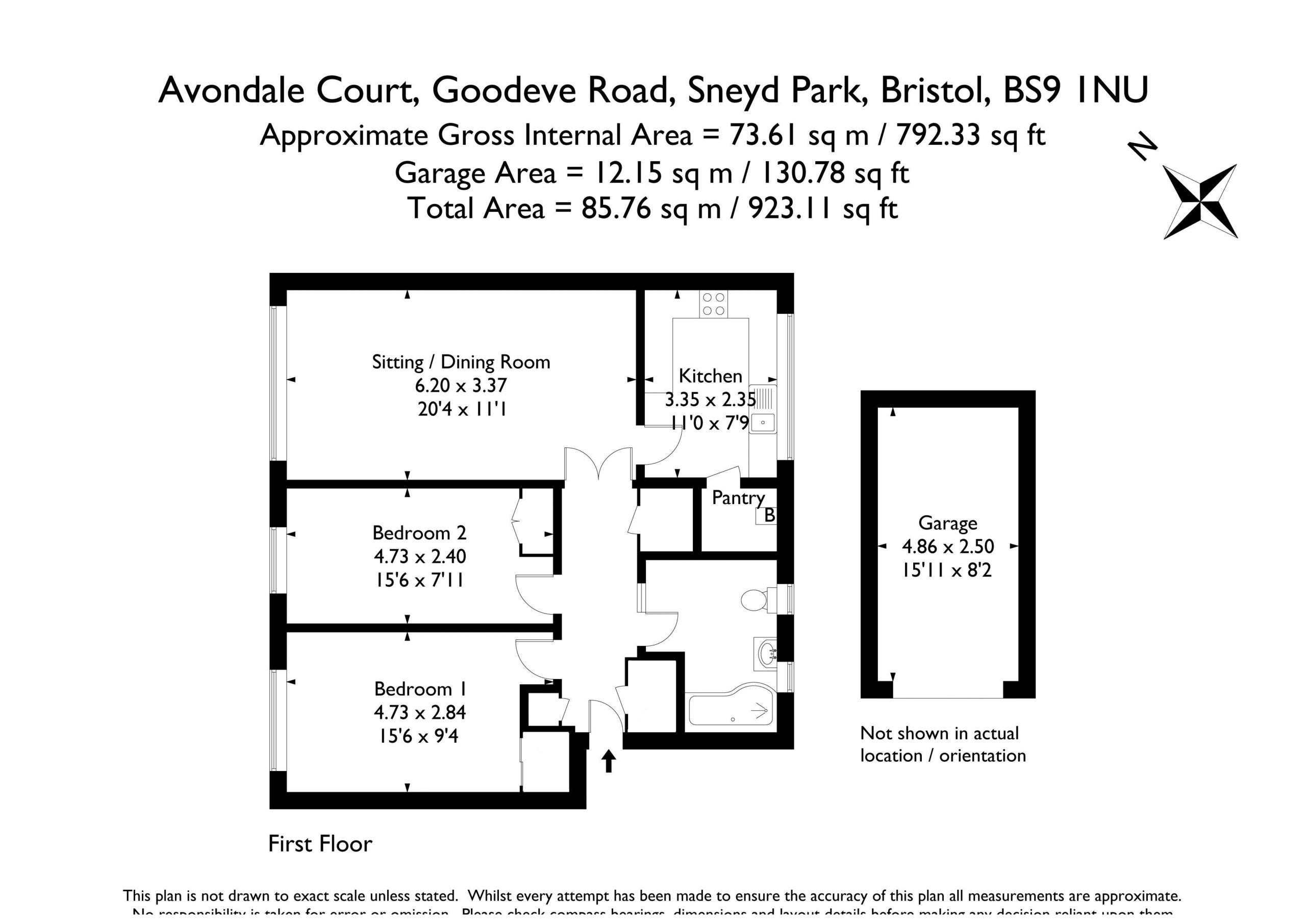 the garage for the property is the same as its door number. It is positioned in a terrace of brick-built garages with flat roofs, which benefit from lighting but no power supply.