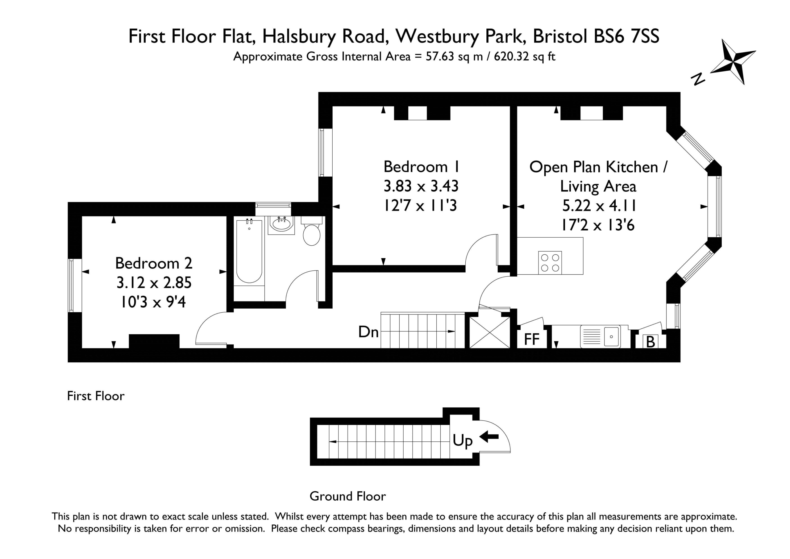 via a garden pathway leading to the main front door and communal entrance to the property, through a short communal hallway, where you will find the private entrance to the first floor flat at ground floor level straight ahead of you.