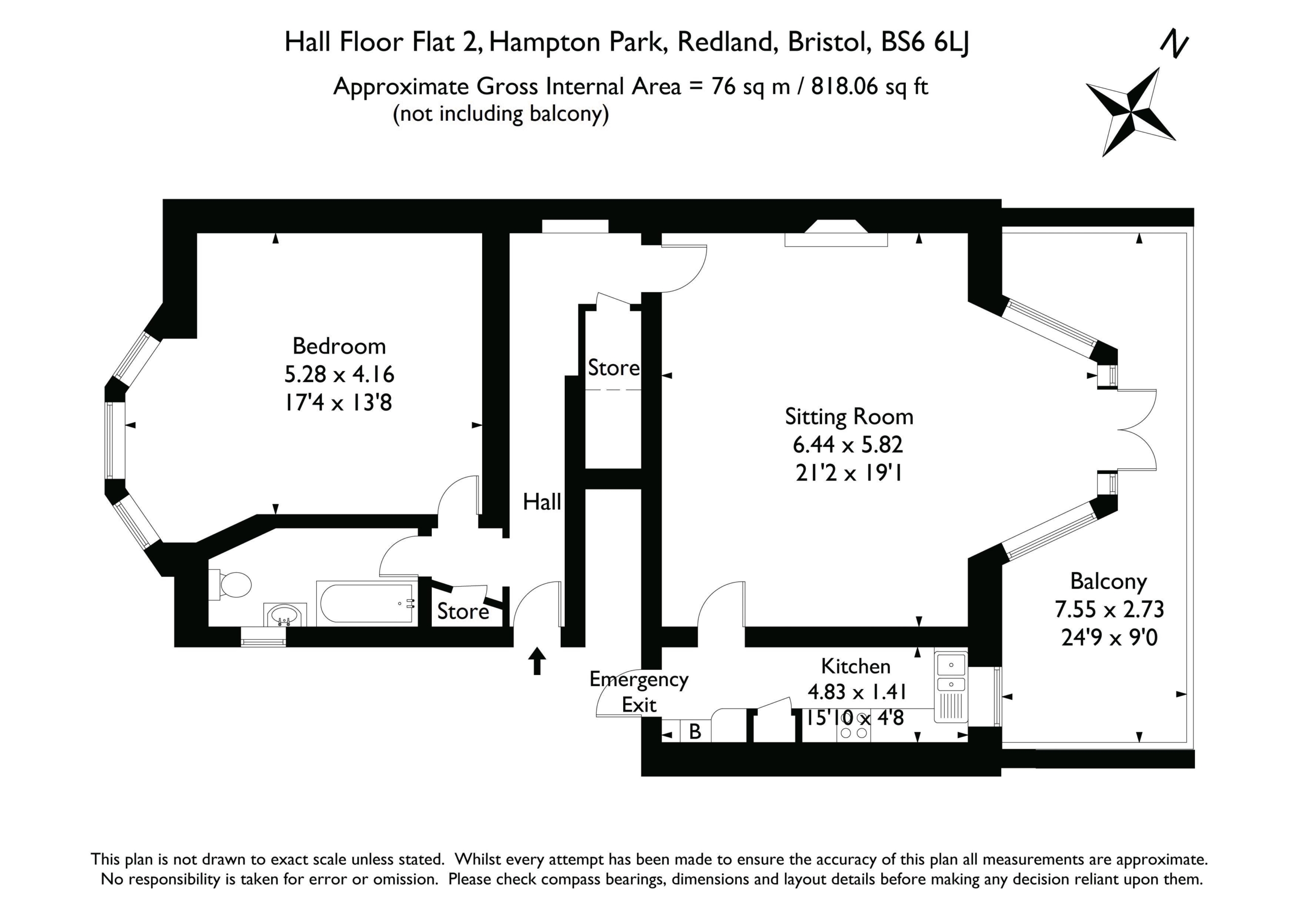 An approx. 7.5m wide rear facing balcony accessible from the sitting room.