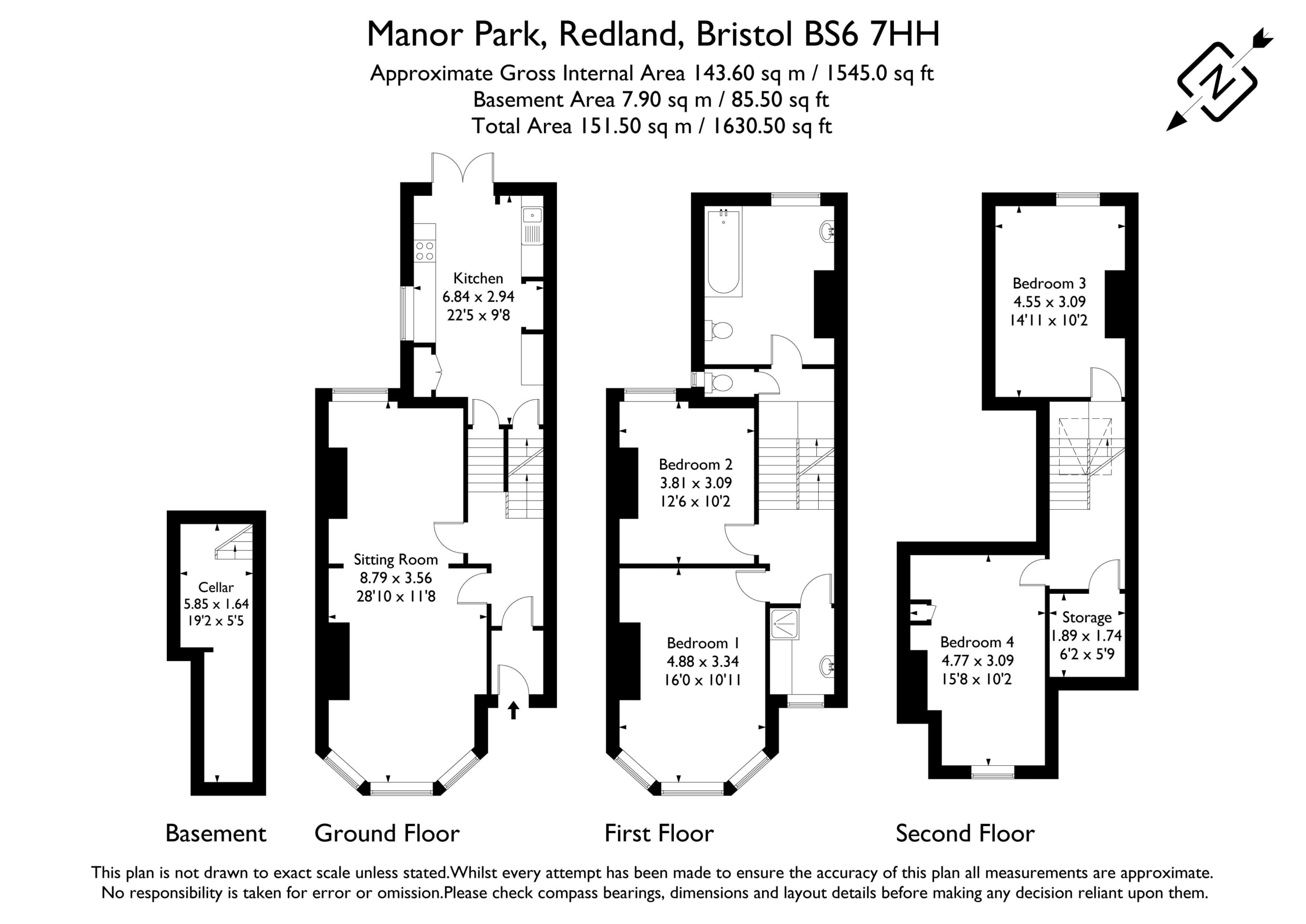 Offered with no onward chain - this well arranged 4 double bedroom Victorian terraced home is conveniently located on the Redland and Westbury Park borders, within 600 metres of Redland Green School and 400 meters of Westbury Park School. Enjoying a low maintenance sunny rear garden and storage cellars. Situated on a side street with the benefit of being in the residents parking permit scheme, with permits available from the council for a modest annual fee. Offered with no onward chain making a prompt and convenient move possible. Ground Floor: entrance vestibule flows through into an entrance hallway with staircase rising to first floor landing. There is a large through reception room with bay window to front and window to rear overlooking the rear garden, separate kitchen/breakfast room with newly fitted kitchen, access to storage cellars and access to the rear garden.First Floor: two double bedrooms, family bathroom, shower room and separate wc. Second Floor: two further double bedrooms and access to attic storage. Fantastic location for families and young professionals, with excellent local schools nearby as well as being within close proximity of the Downs, Blackboy Hill and Whiteladies Road, with its shops, restaurants, cafes and bus connections. Redland Green Park, Waitrose Supermarket and the Orpheus Cinema are also all within easy reach. An attractive and characterful property offering a blank canvas for one to update as lies to suit them.