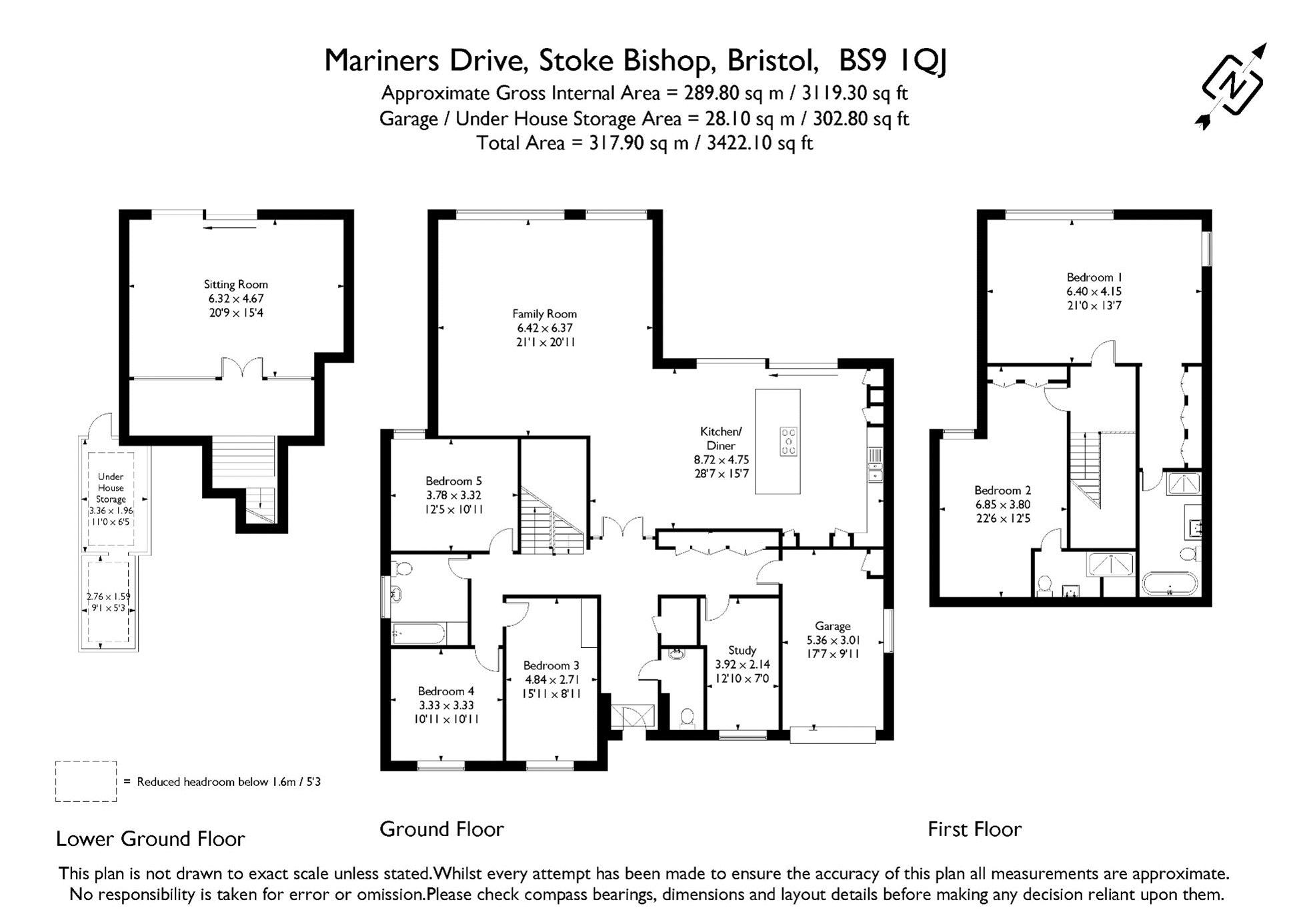 Ground Floor: entrance hallway, cloakroom/wc, study, kitchen/family room, bedrooms 3, 4 & 5, family bathroom/wc.