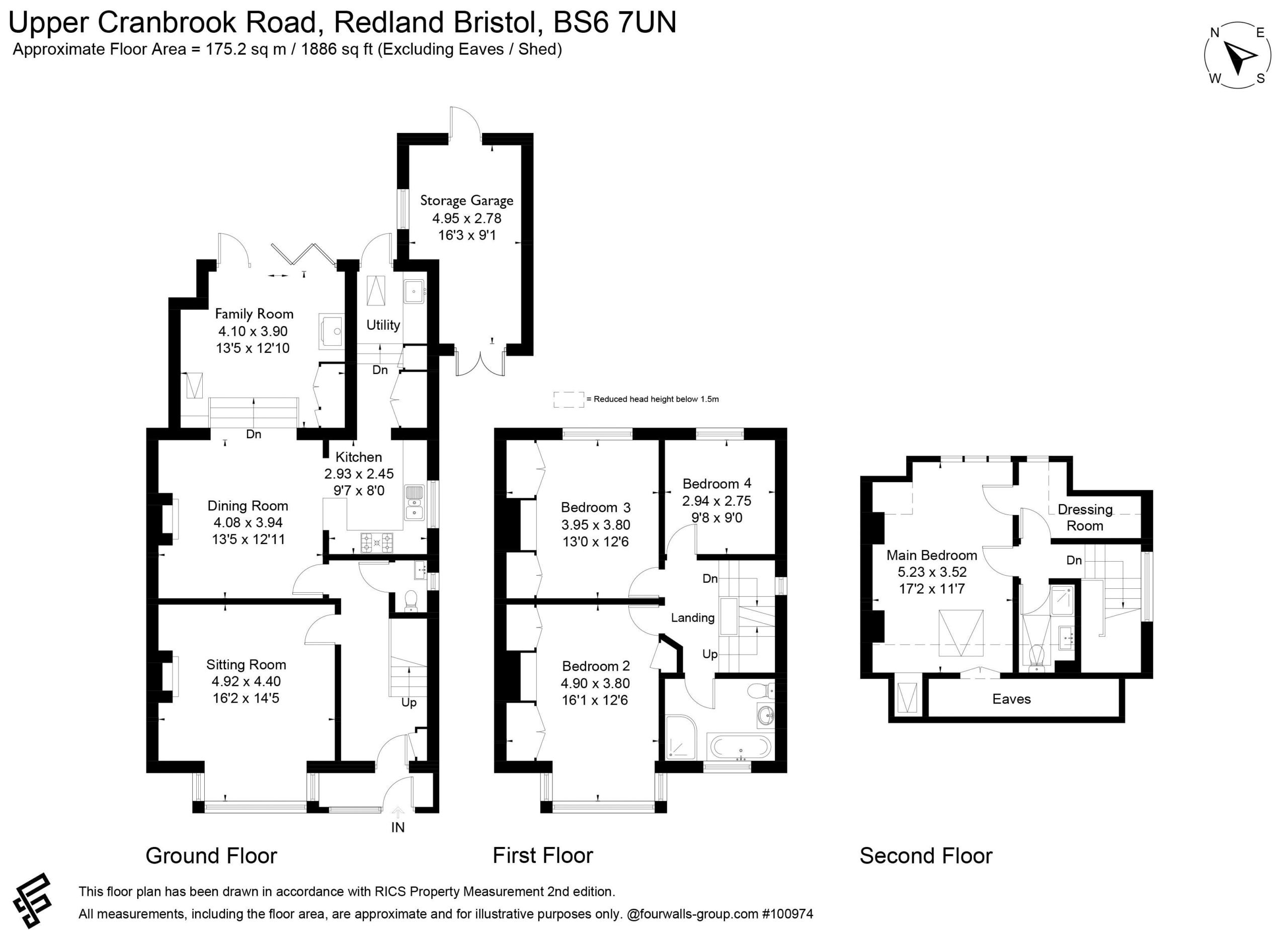 First Floor: landing, 3 bedrooms, family bath/shower room.