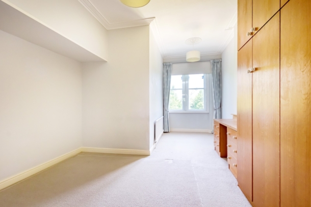 this spacious primary bedroom is located to the far side of the property and benefits from an en-suite shower room, radiator, ceiling cornicing, ornate ceiling rose and twin sash windows to front aspect with secondary glazing, and fitted wardrobes with drawers providing ample storage.