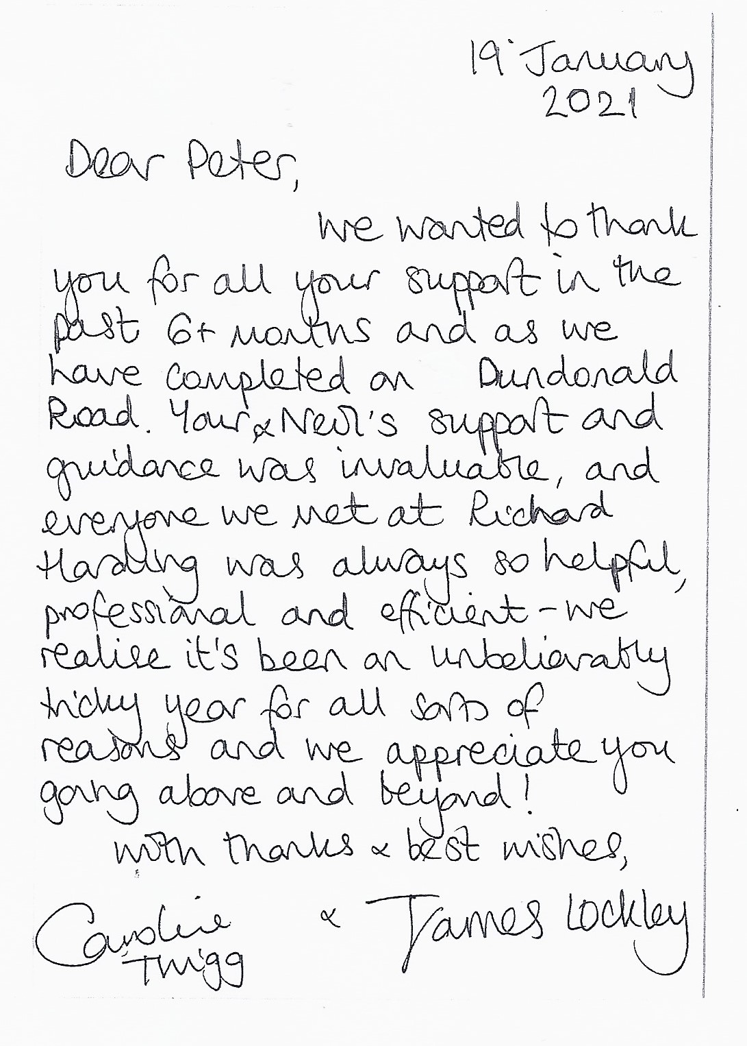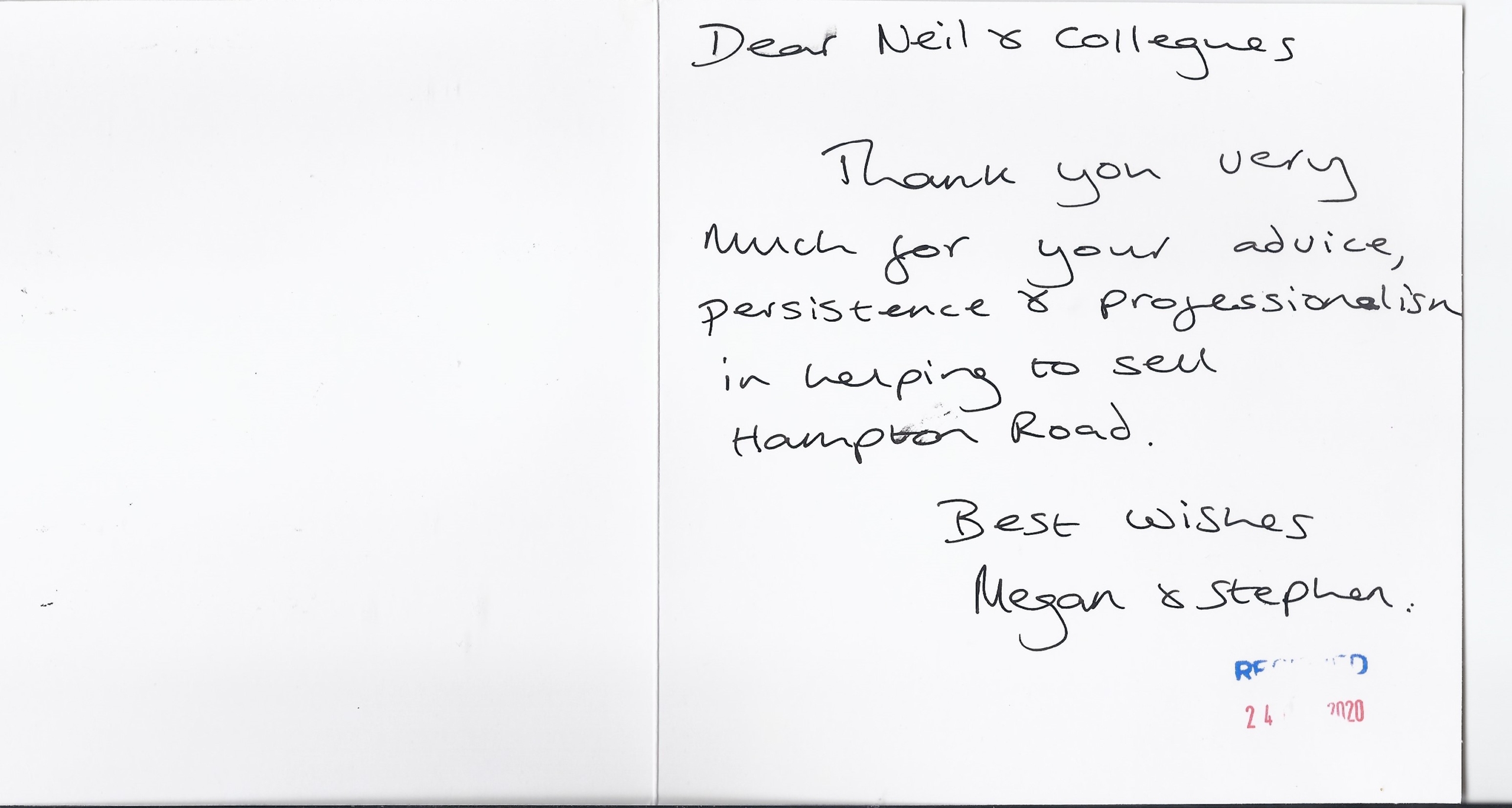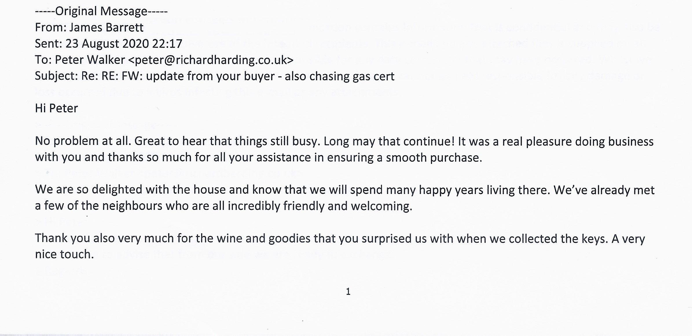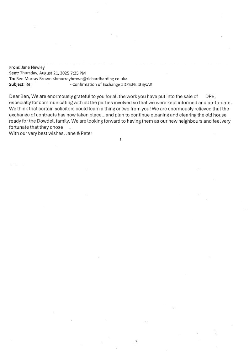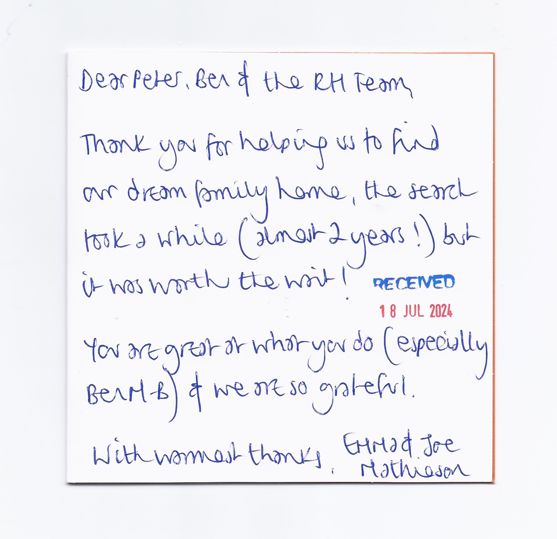 You are welcome to inspect any of the original letters, cards and emails which are held on file in our office or speak to any one of our clients – with their permission – regarding their personal experience of moving with Richard Harding. These testimonials date from the present back to our early years so that you can see we have consistently maintained high standards.