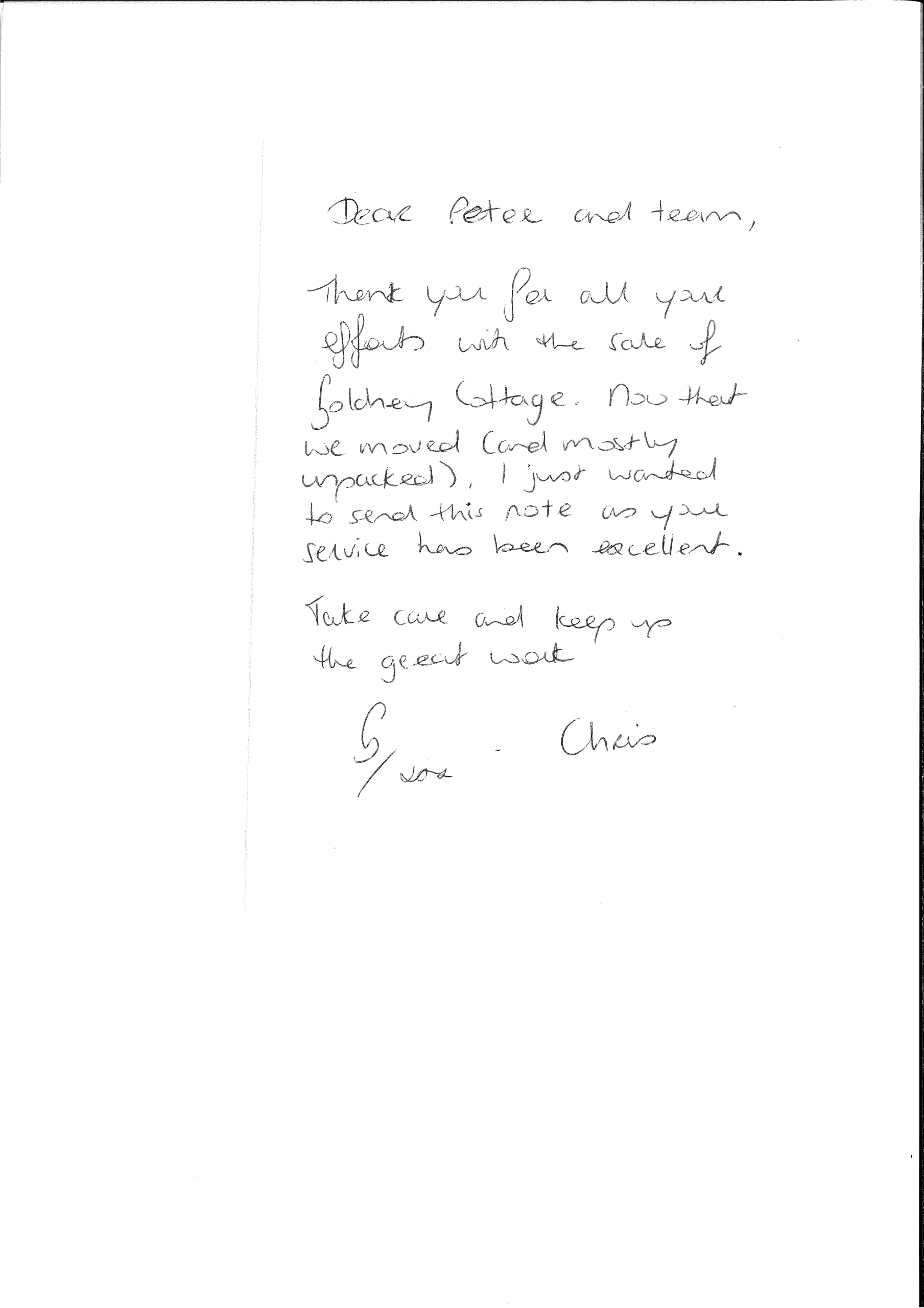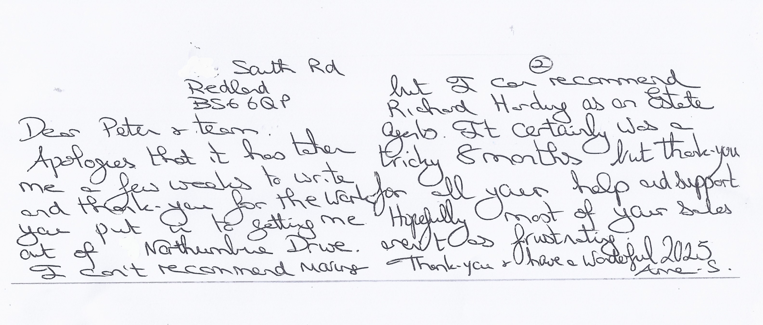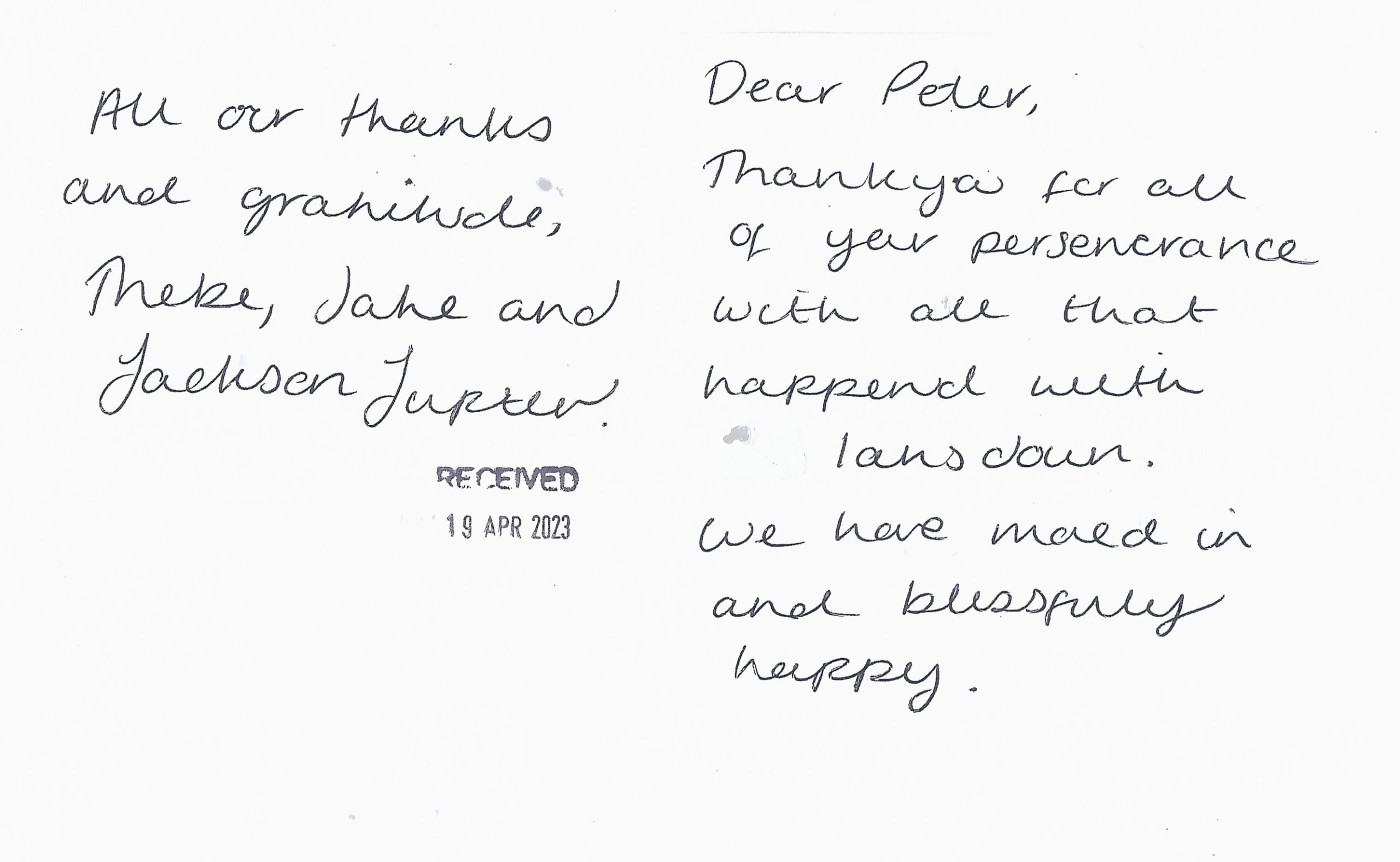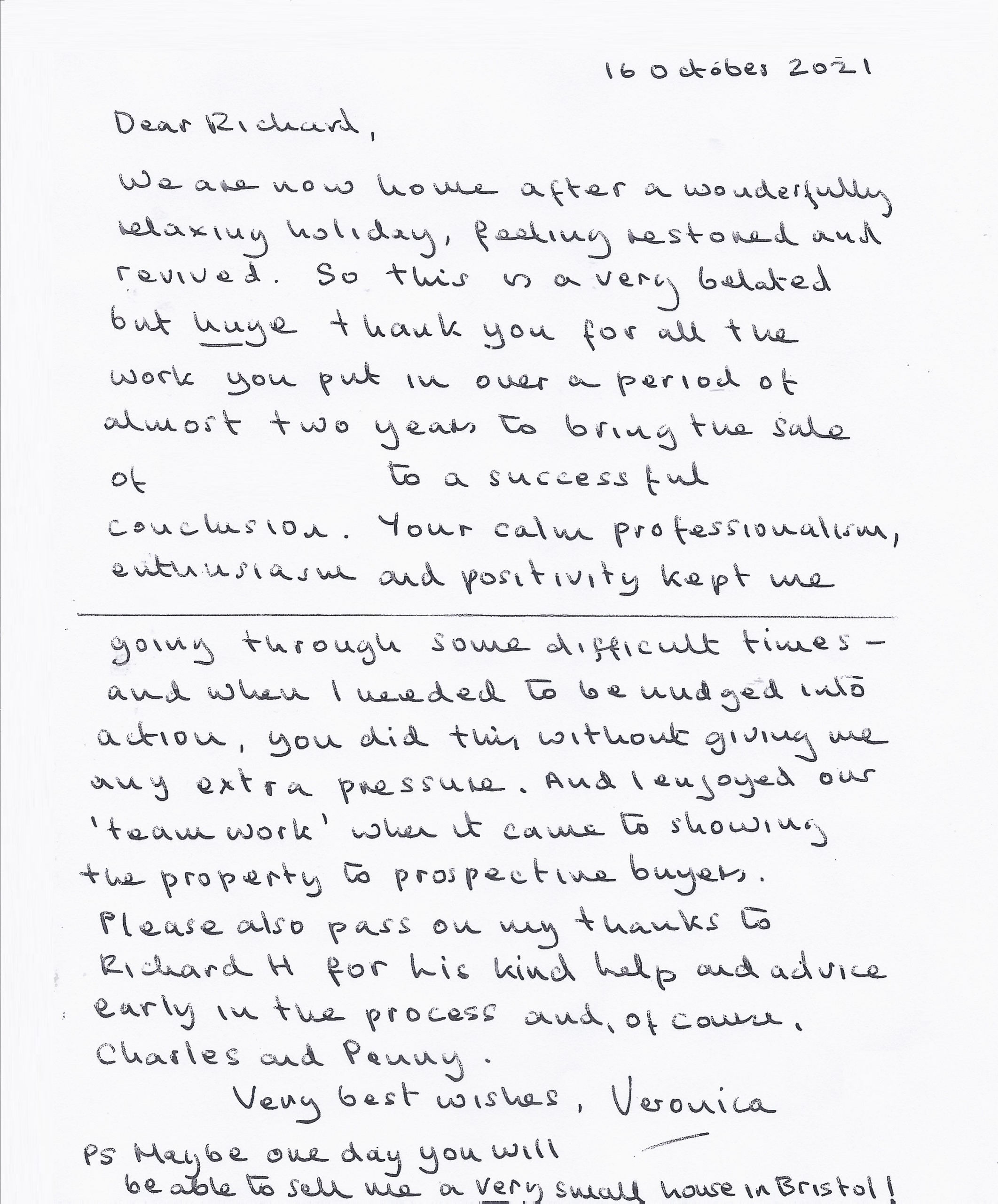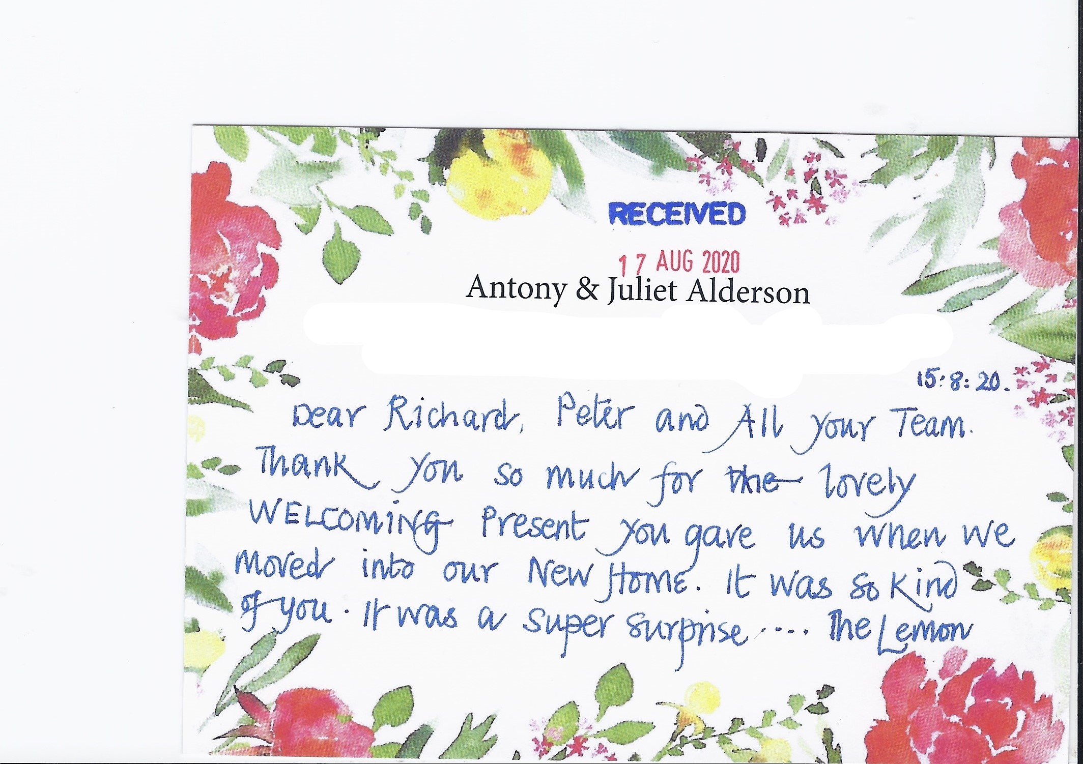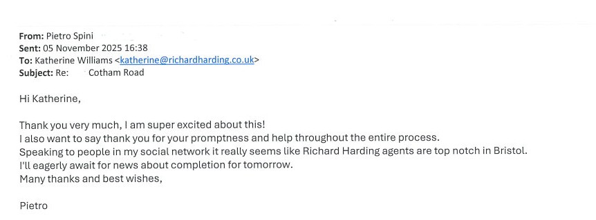 You are welcome to inspect any of the original letters, cards and emails which are held on file in our office or speak to any one of our clients – with their permission – regarding their personal experience of moving with Richard Harding. These testimonials date from the present back to our early years so that you can see we have consistently maintained high standards.
