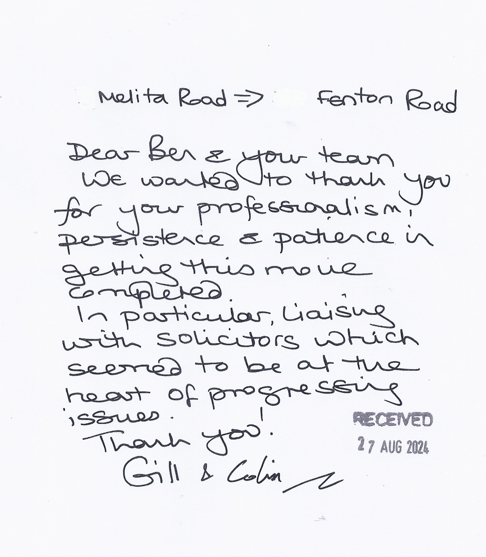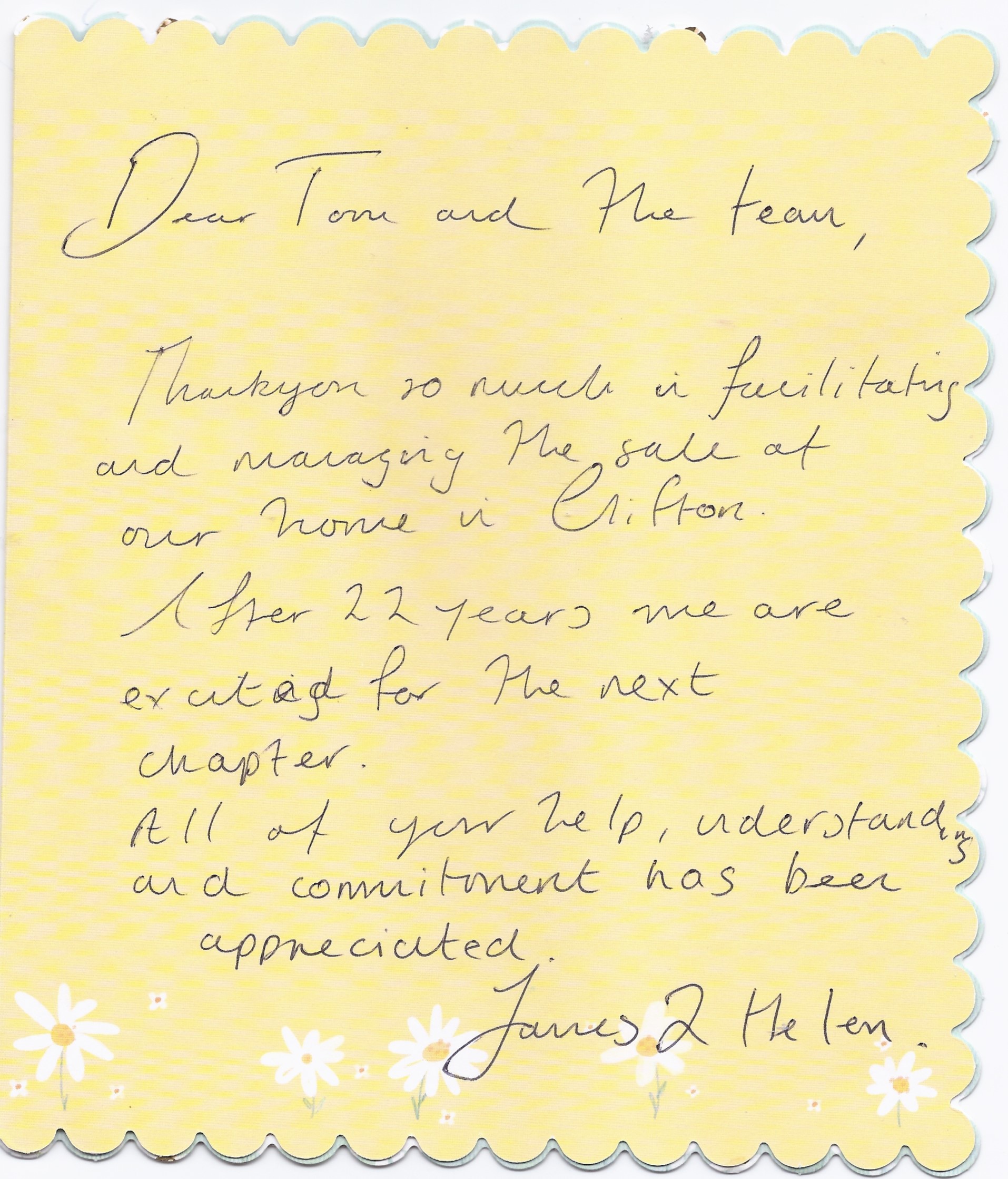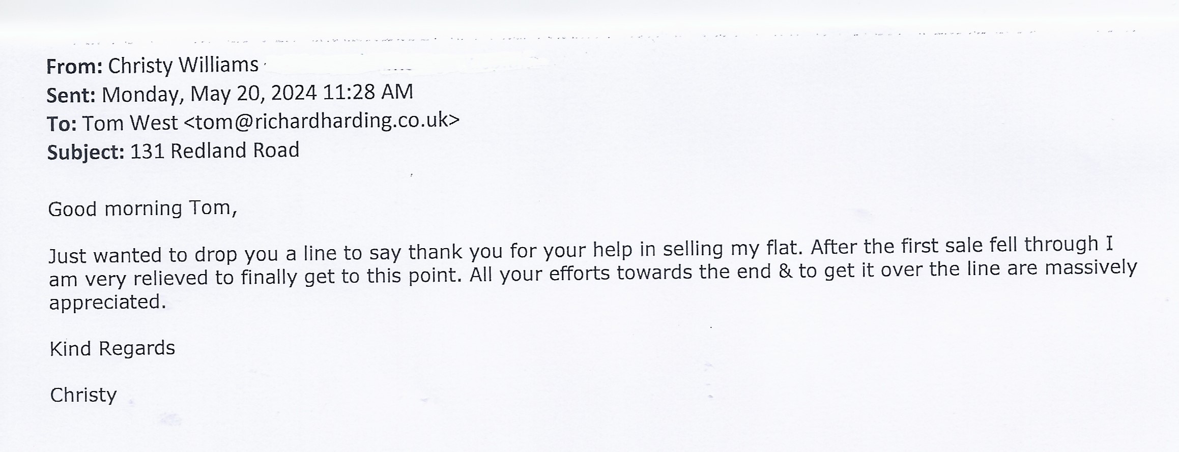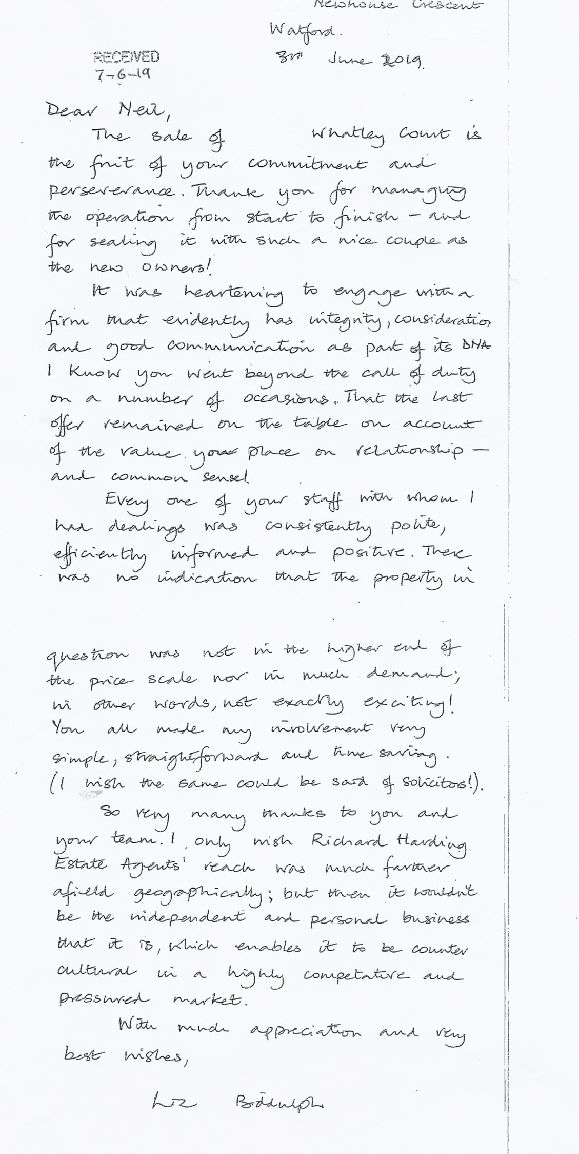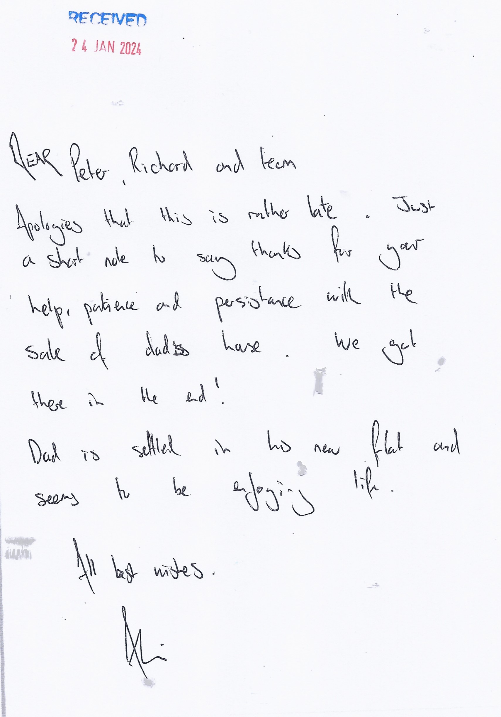 You are welcome to inspect any of the original letters, cards and emails which are held on file in our office or speak to any one of our clients – with their permission – regarding their personal experience of moving with Richard Harding. These testimonials date from the present back to our early years so that you can see we have consistently maintained high standards.