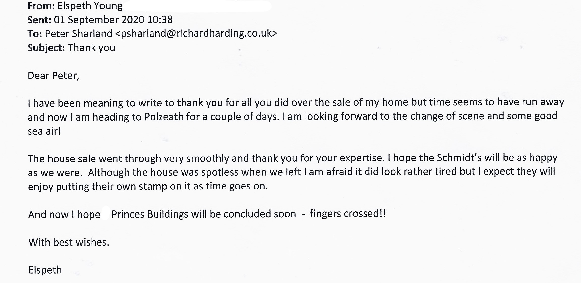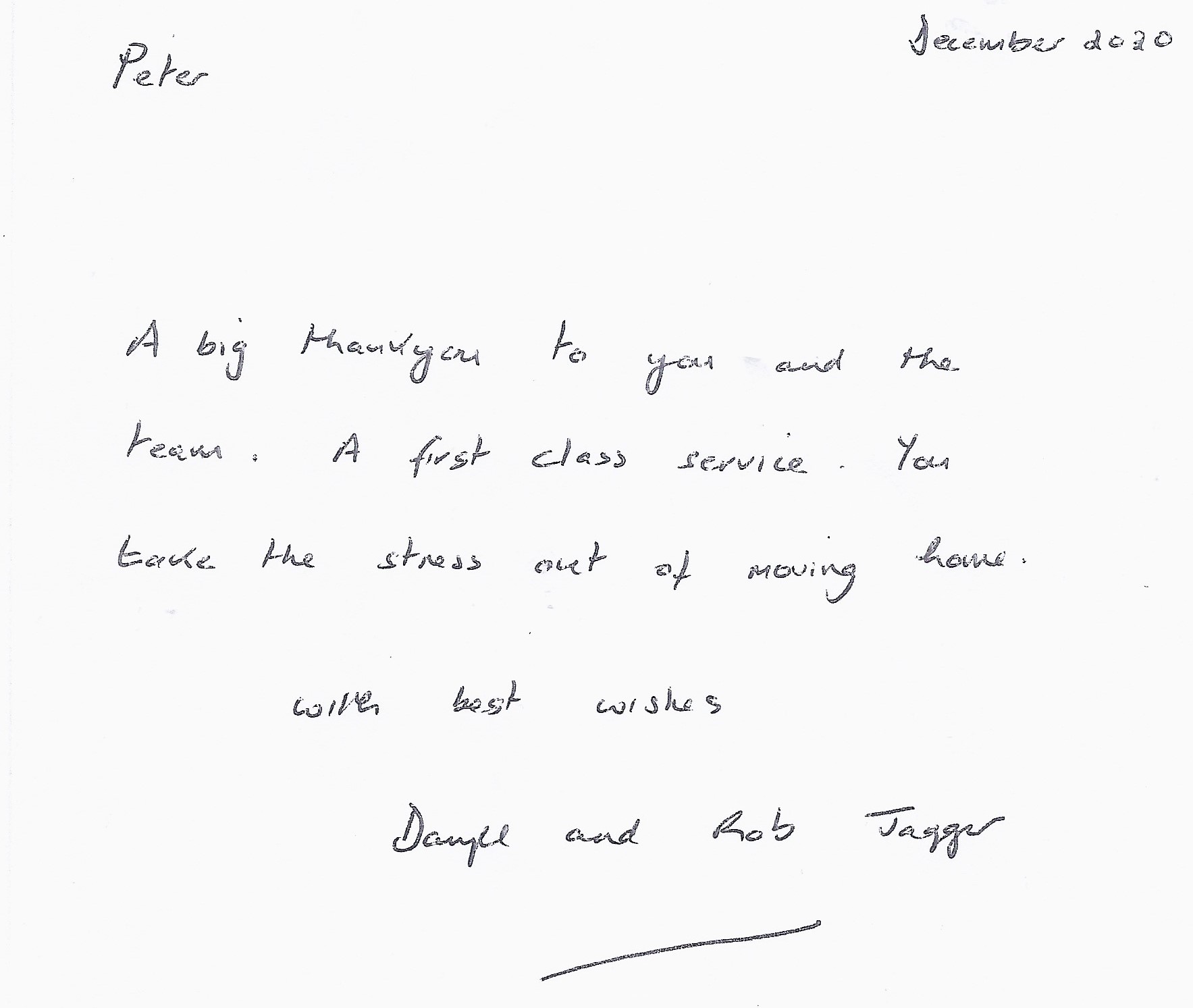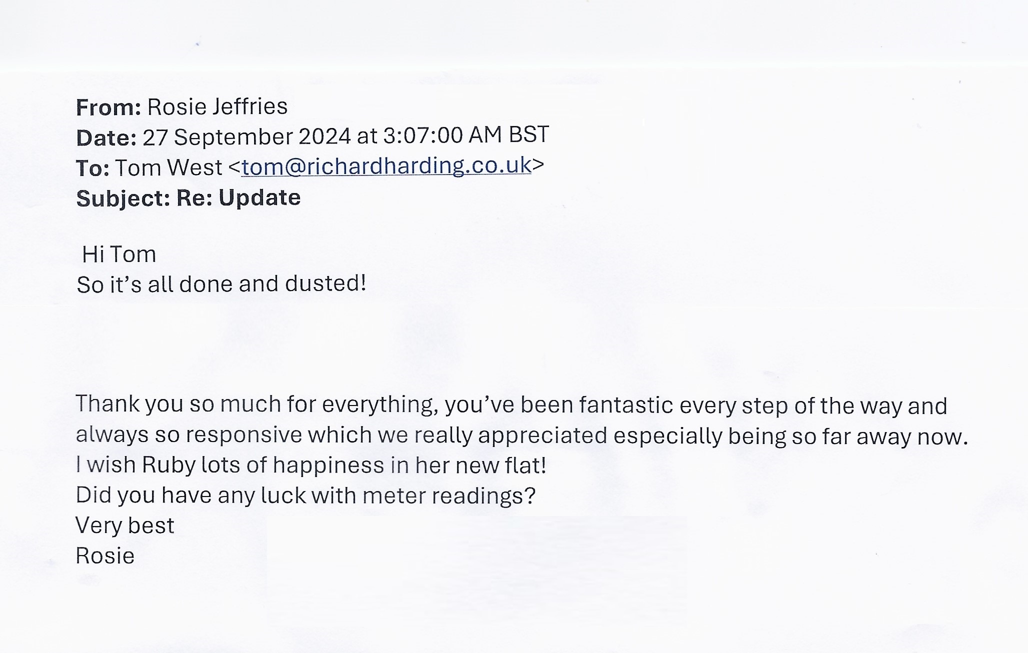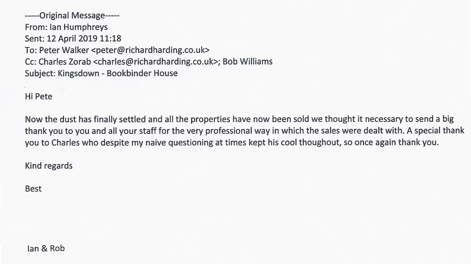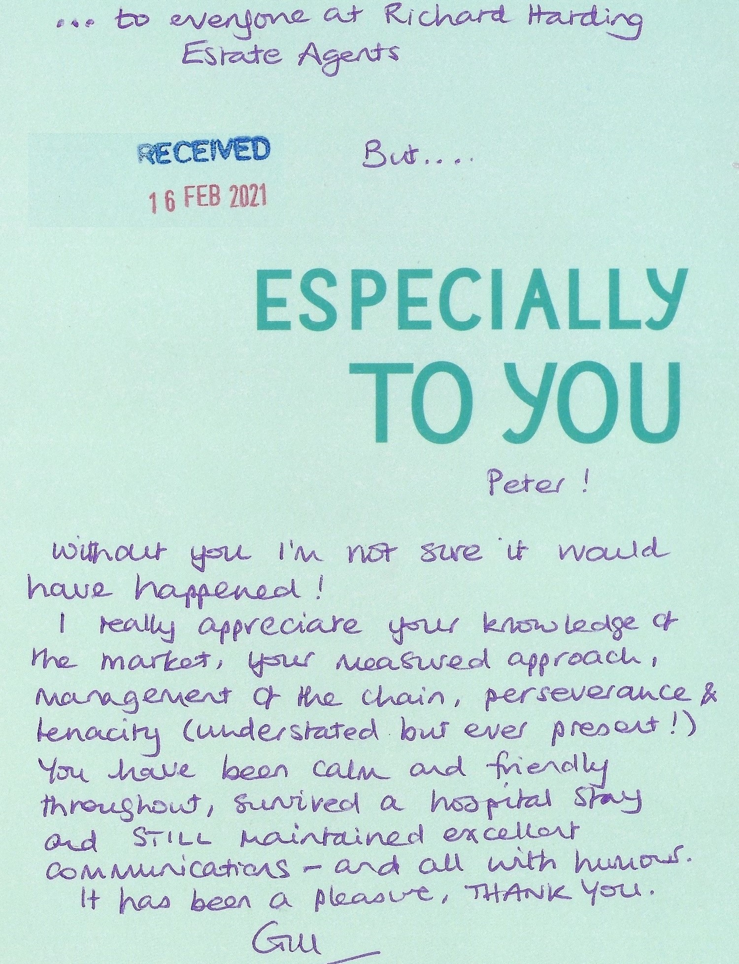 You are welcome to inspect any of the original letters, cards and emails which are held on file in our office or speak to any one of our clients – with their permission – regarding their personal experience of moving with Richard Harding. These testimonials date from the present back to our early years so that you can see we have consistently maintained high standards.
