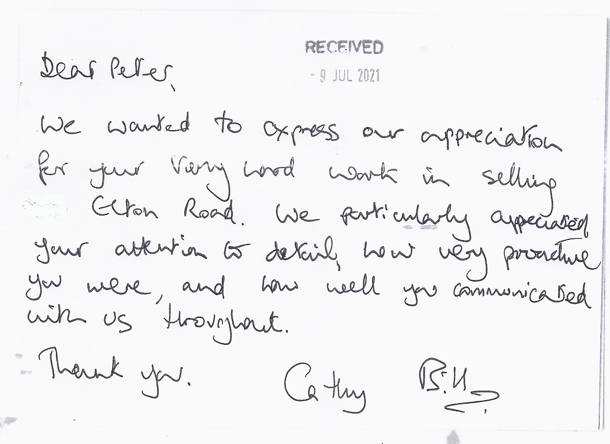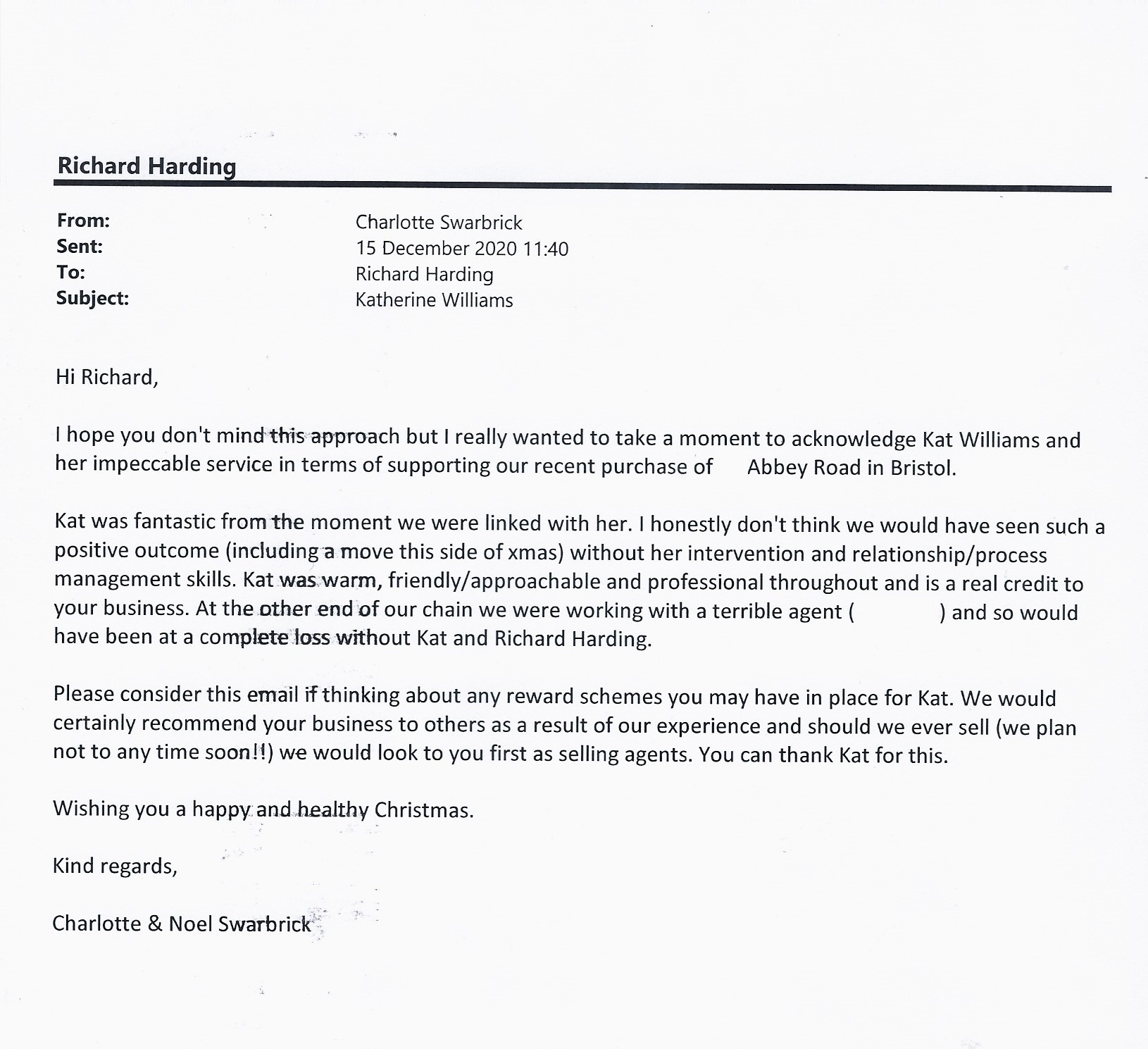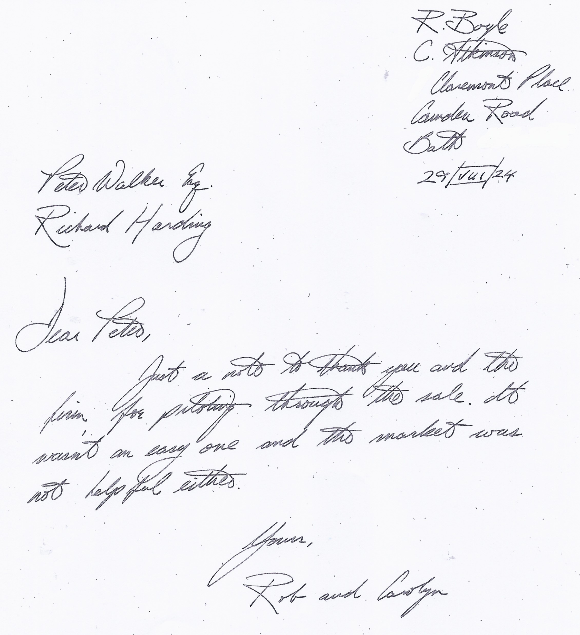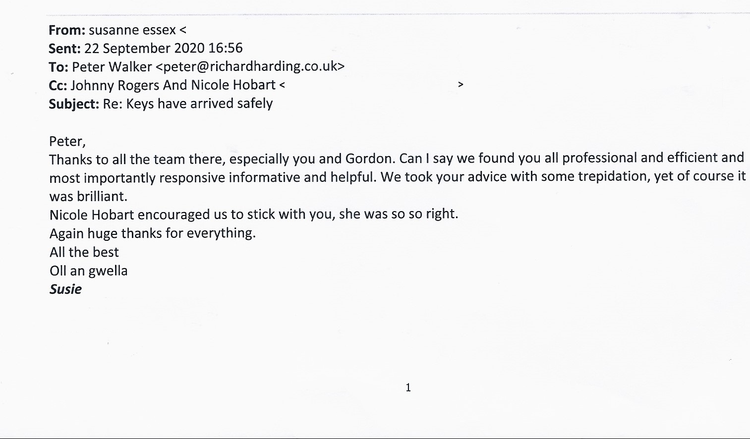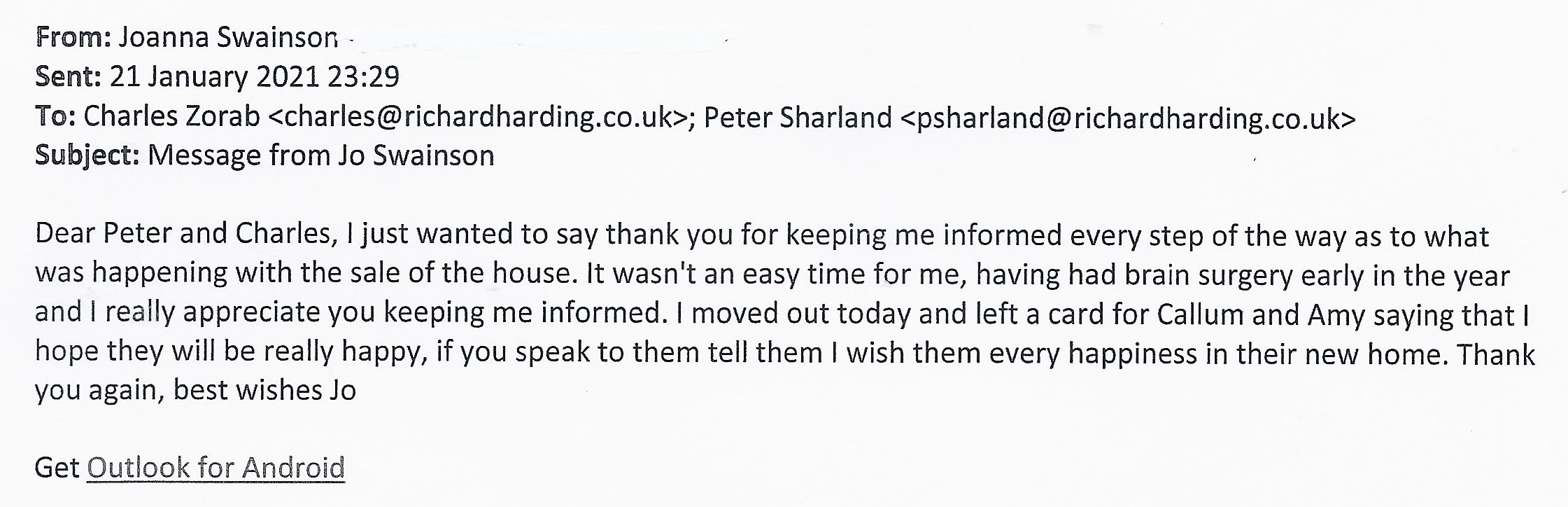 You are welcome to inspect any of the original letters, cards and emails which are held on file in our office or speak to any one of our clients – with their permission – regarding their personal experience of moving with Richard Harding. These testimonials date from the present back to our early years so that you can see we have consistently maintained high standards.