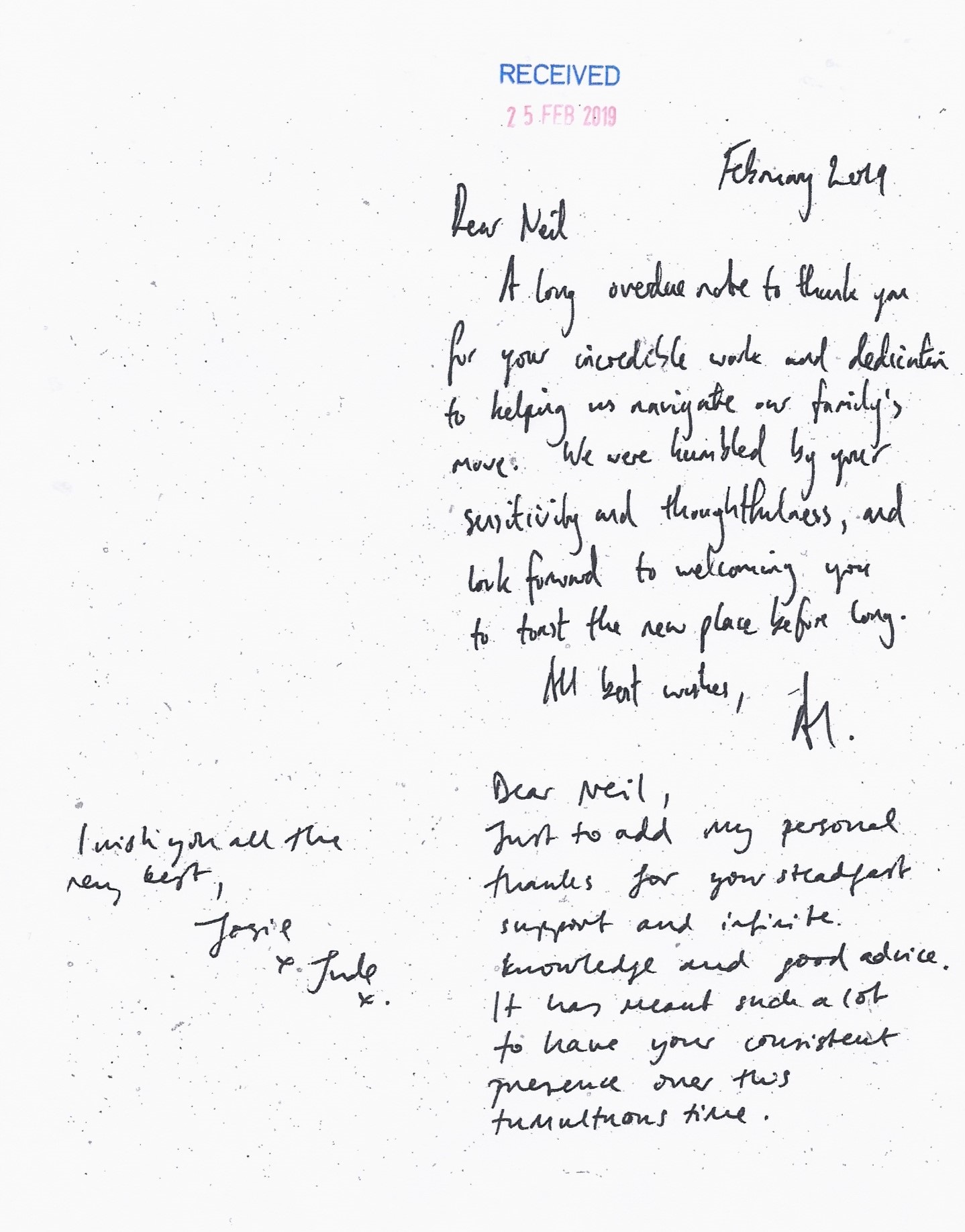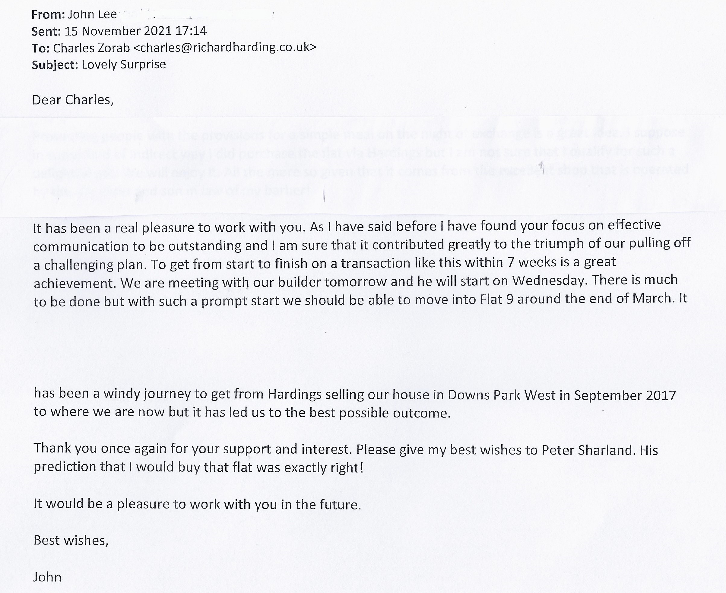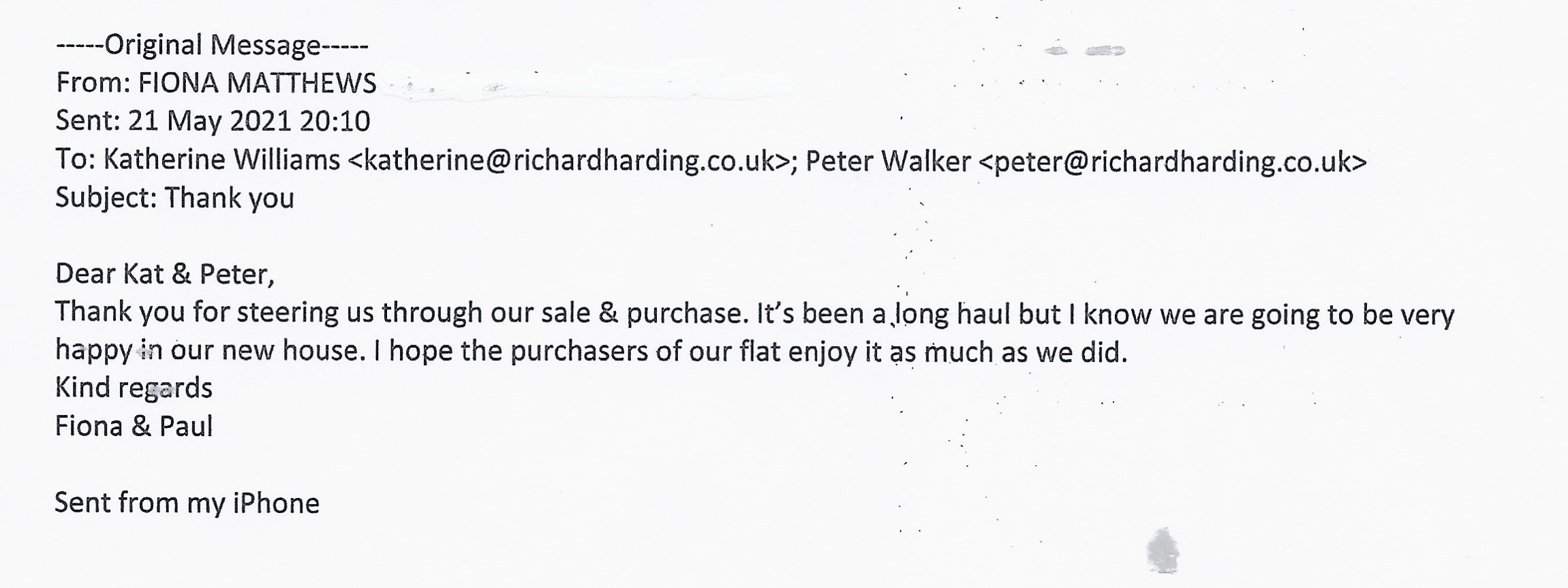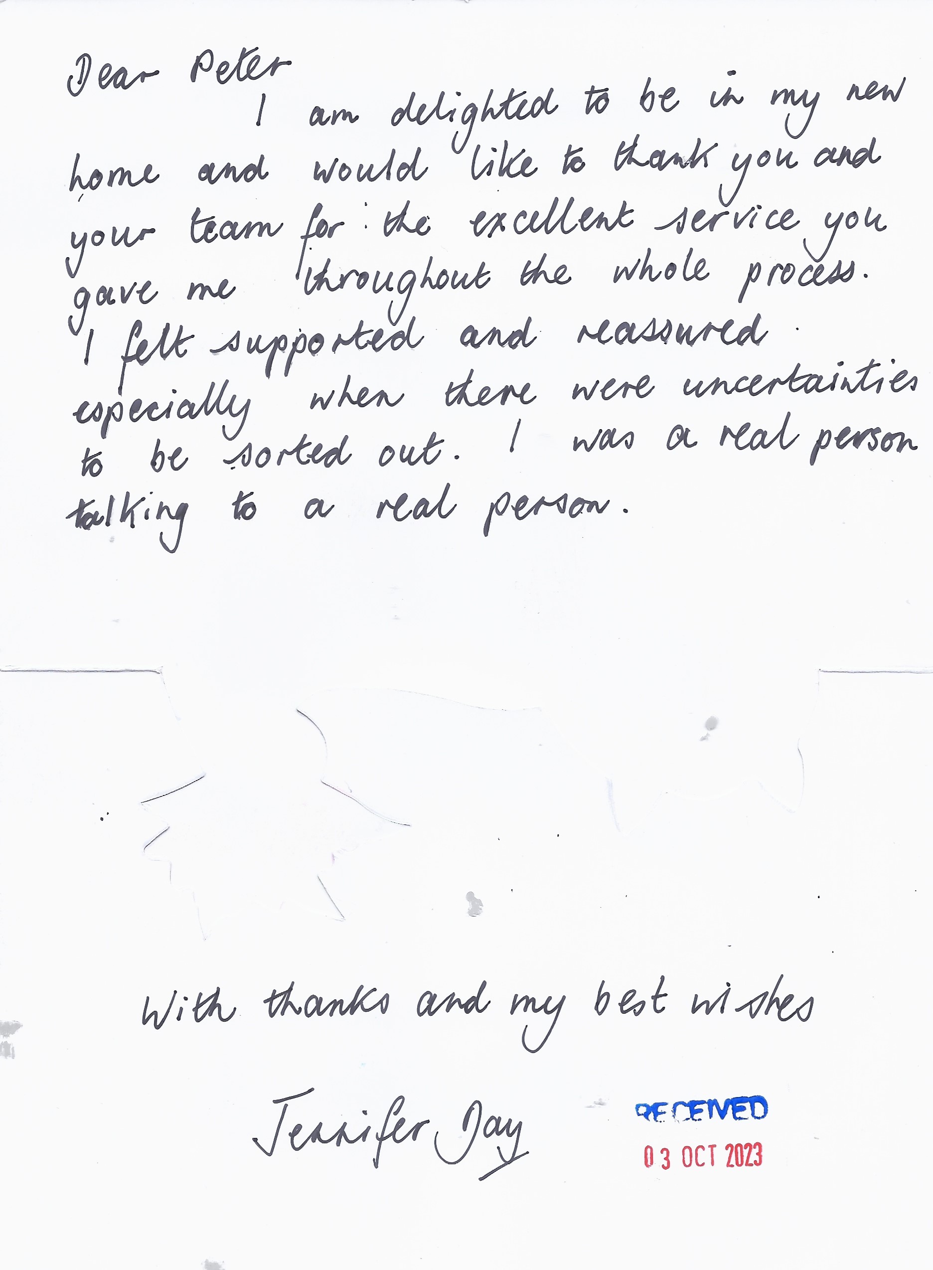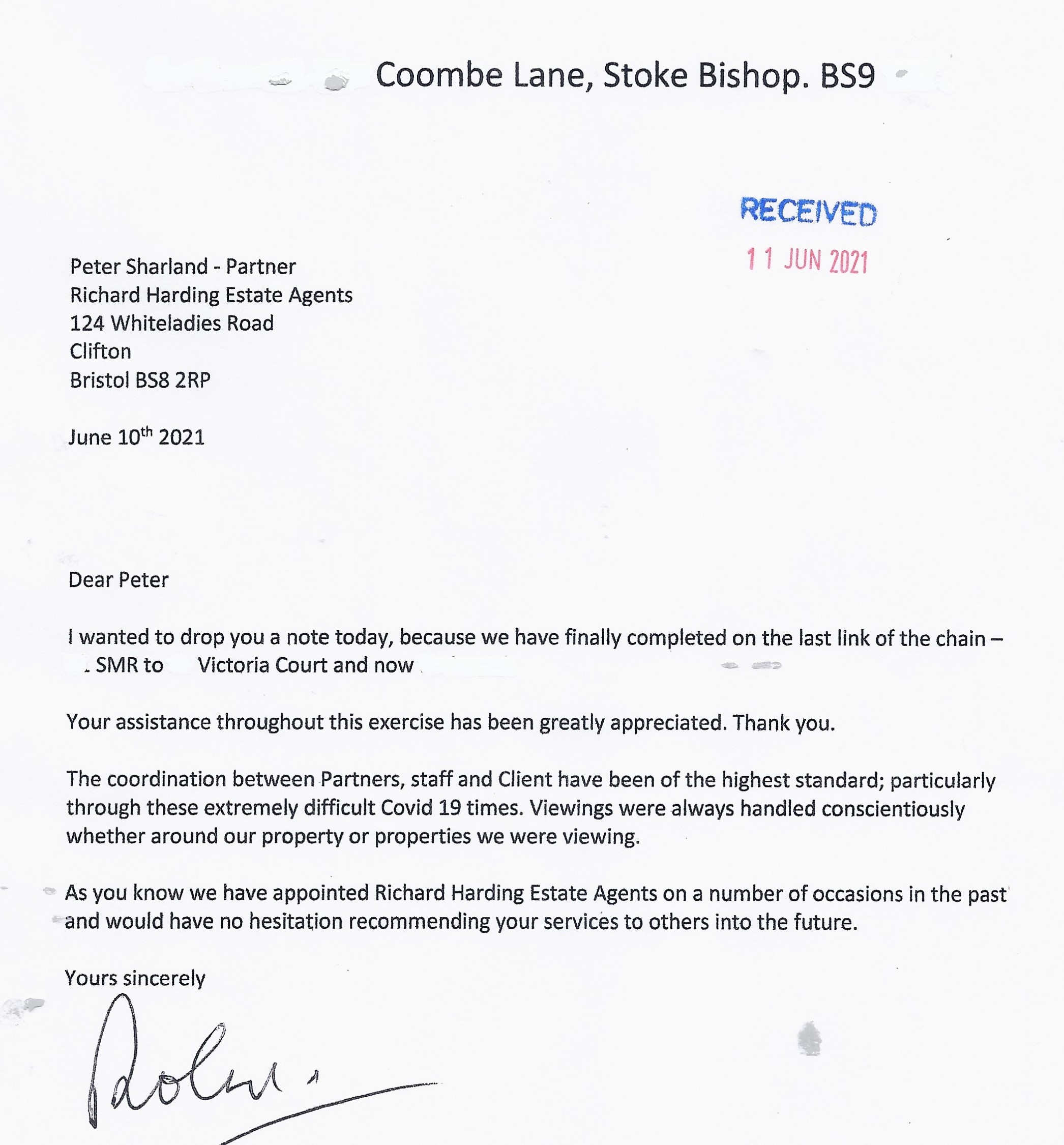 You are welcome to inspect any of the original letters, cards and emails which are held on file in our office or speak to any one of our clients – with their permission – regarding their personal experience of moving with Richard Harding. These testimonials date from the present back to our early years so that you can see we have consistently maintained high standards.