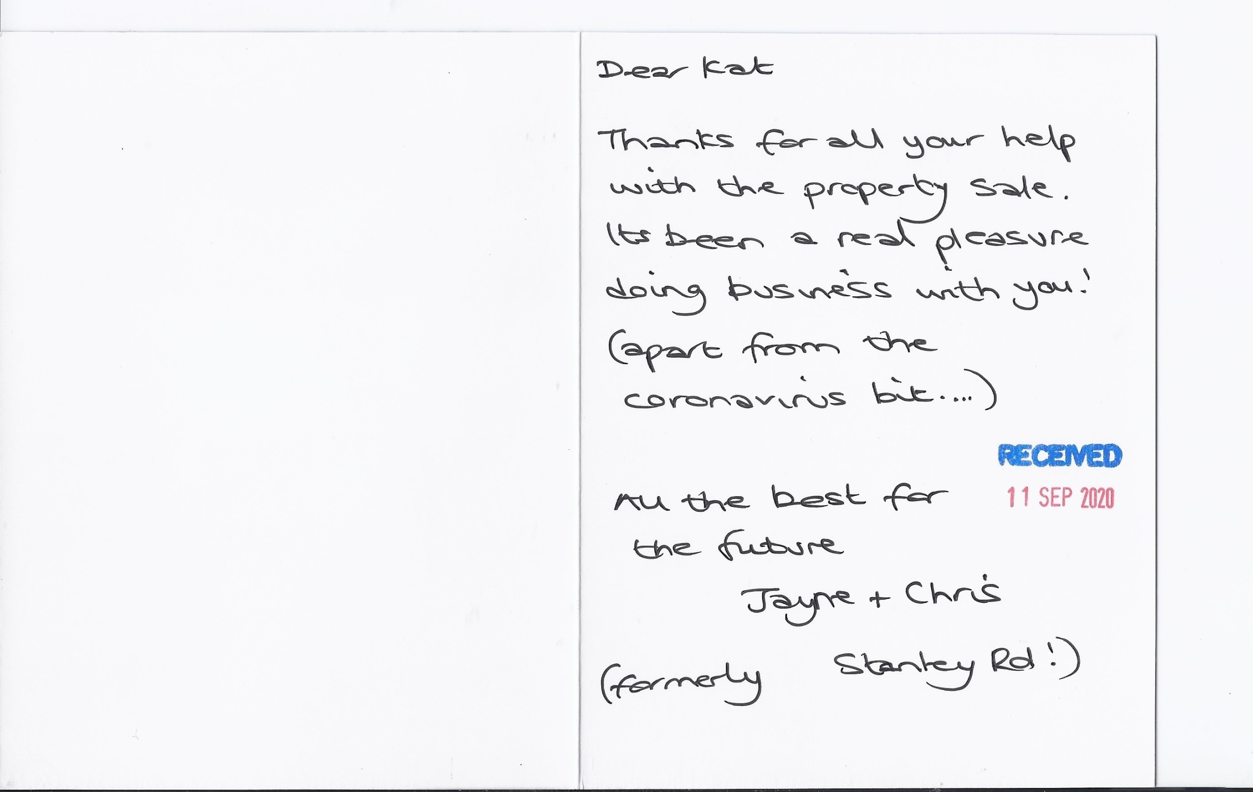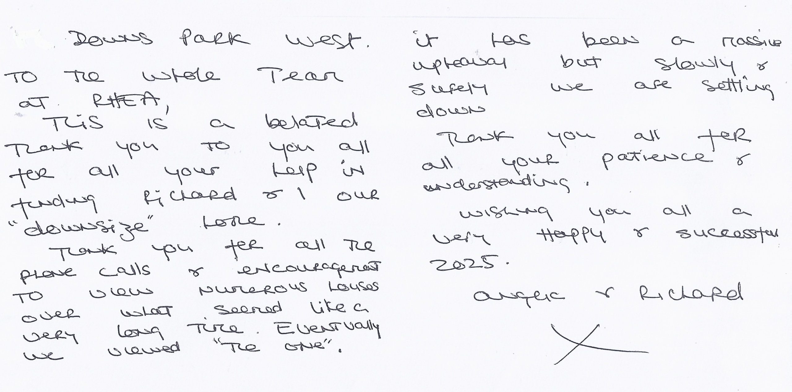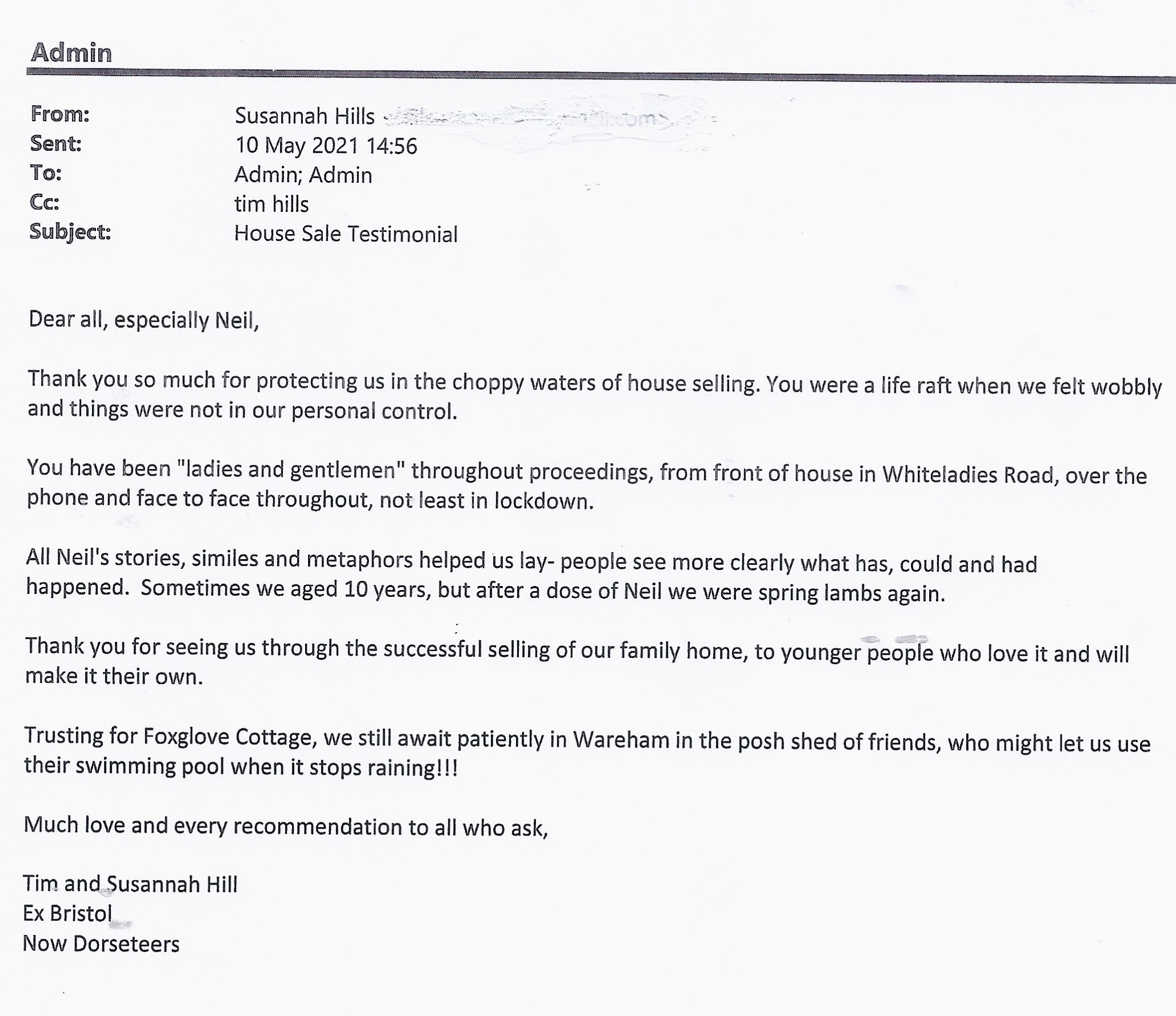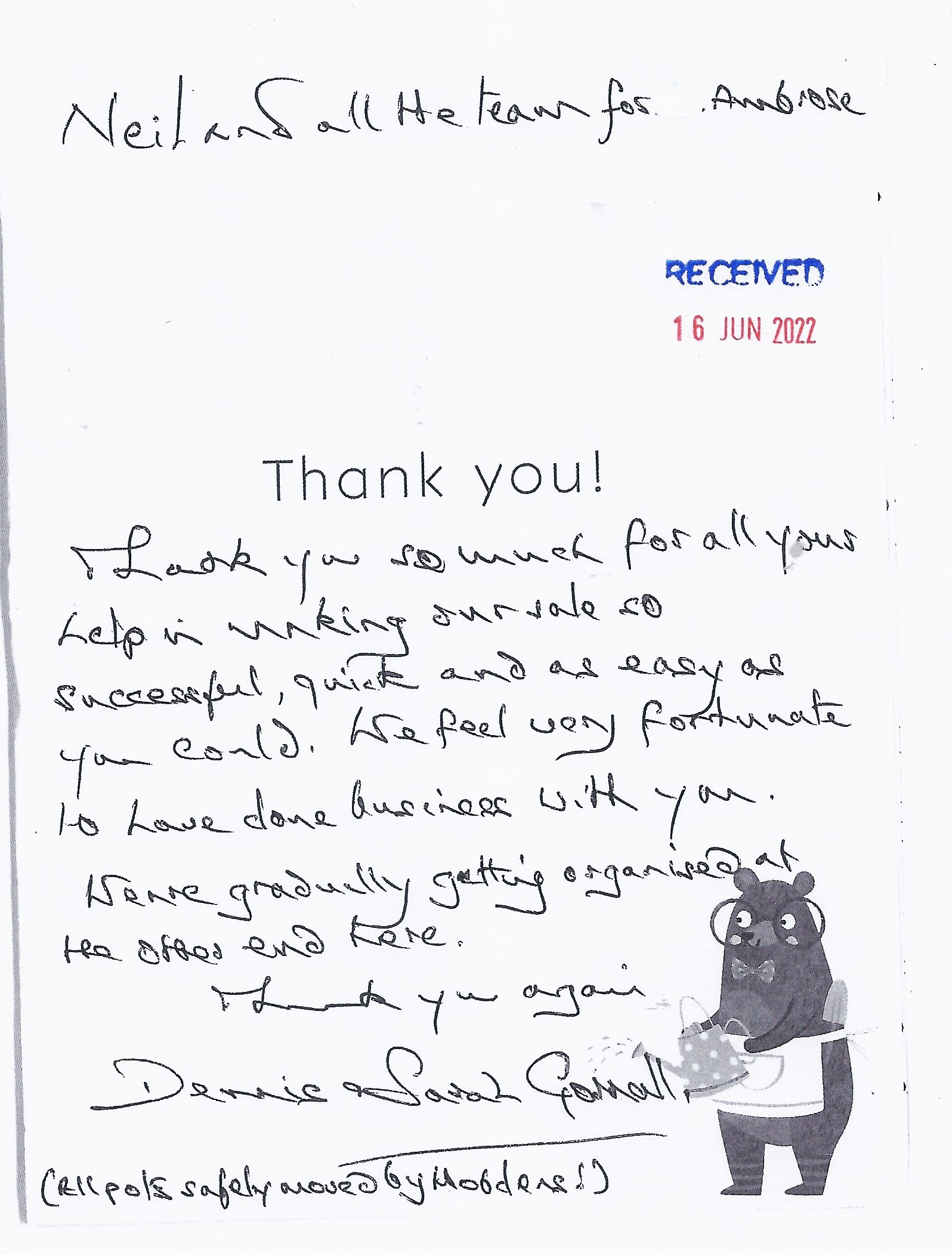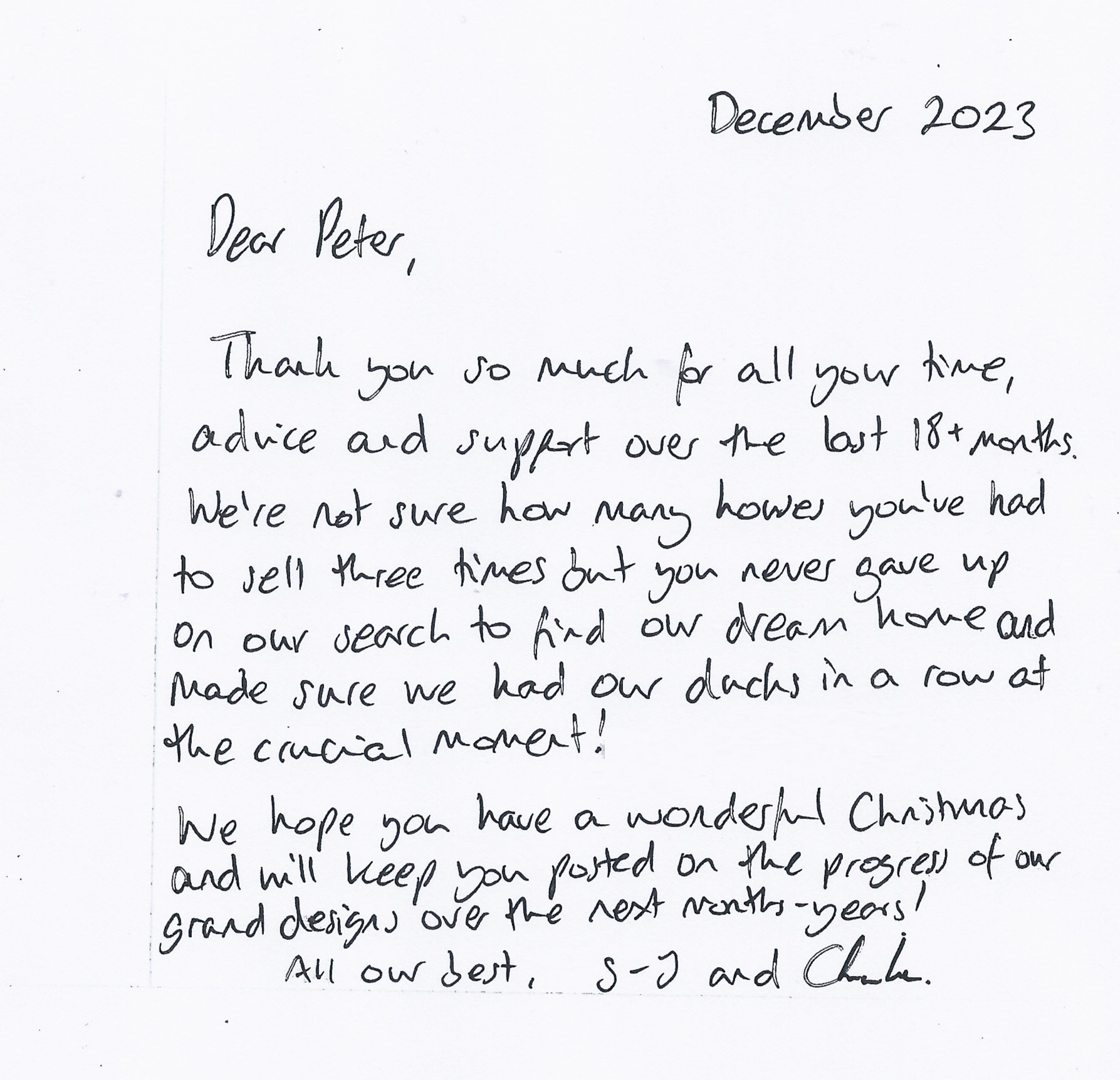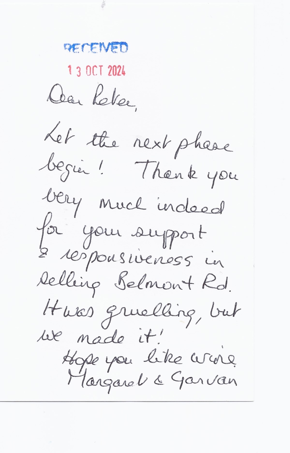 You are welcome to inspect any of the original letters, cards and emails which are held on file in our office or speak to any one of our clients – with their permission – regarding their personal experience of moving with Richard Harding. These testimonials date from the present back to our early years so that you can see we have consistently maintained high standards.
