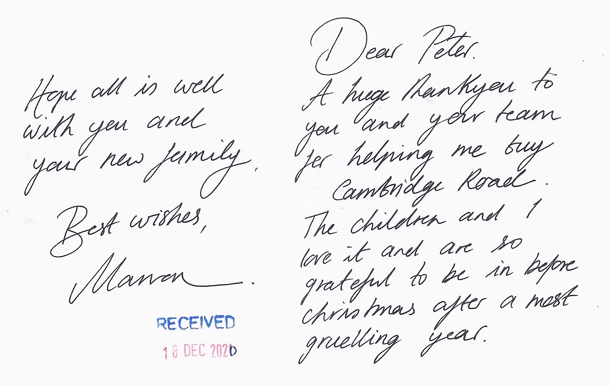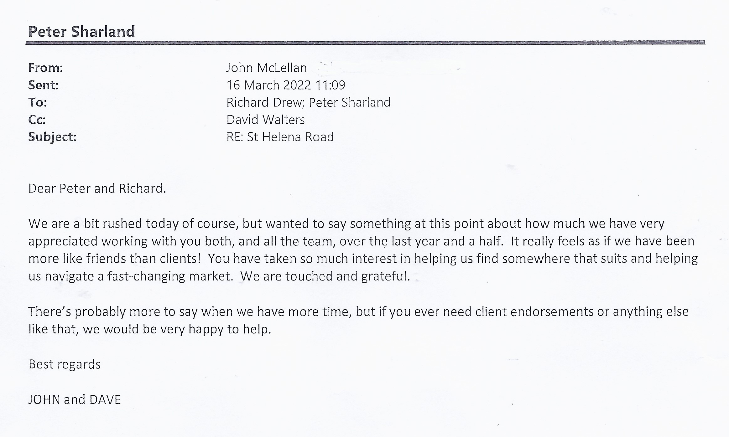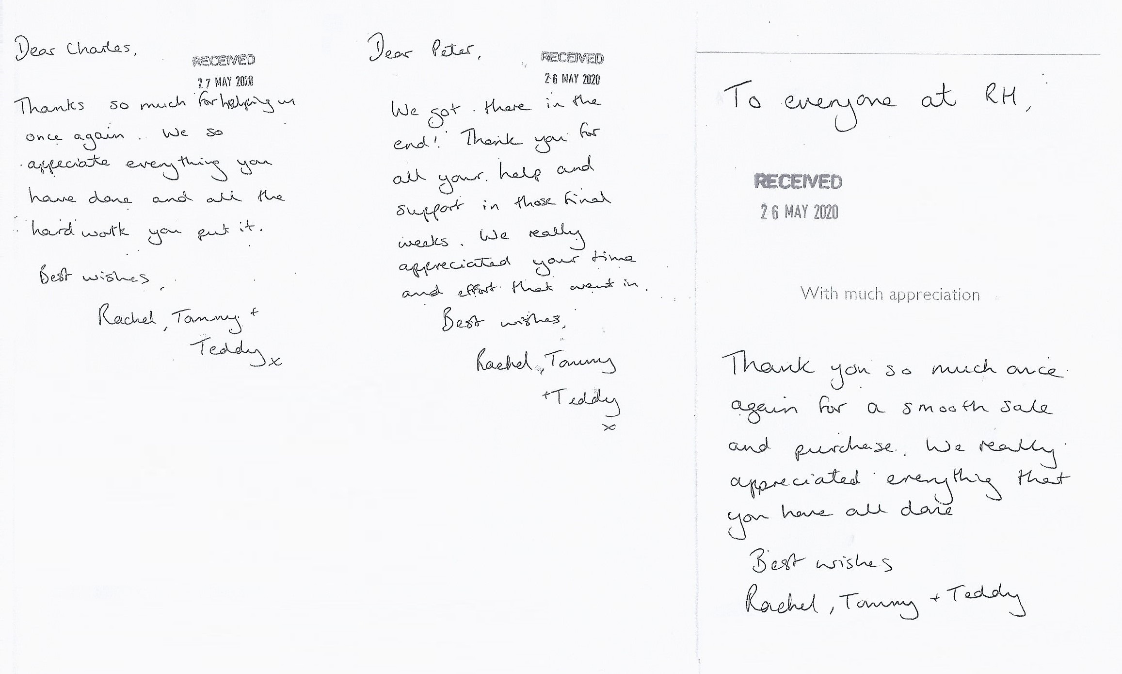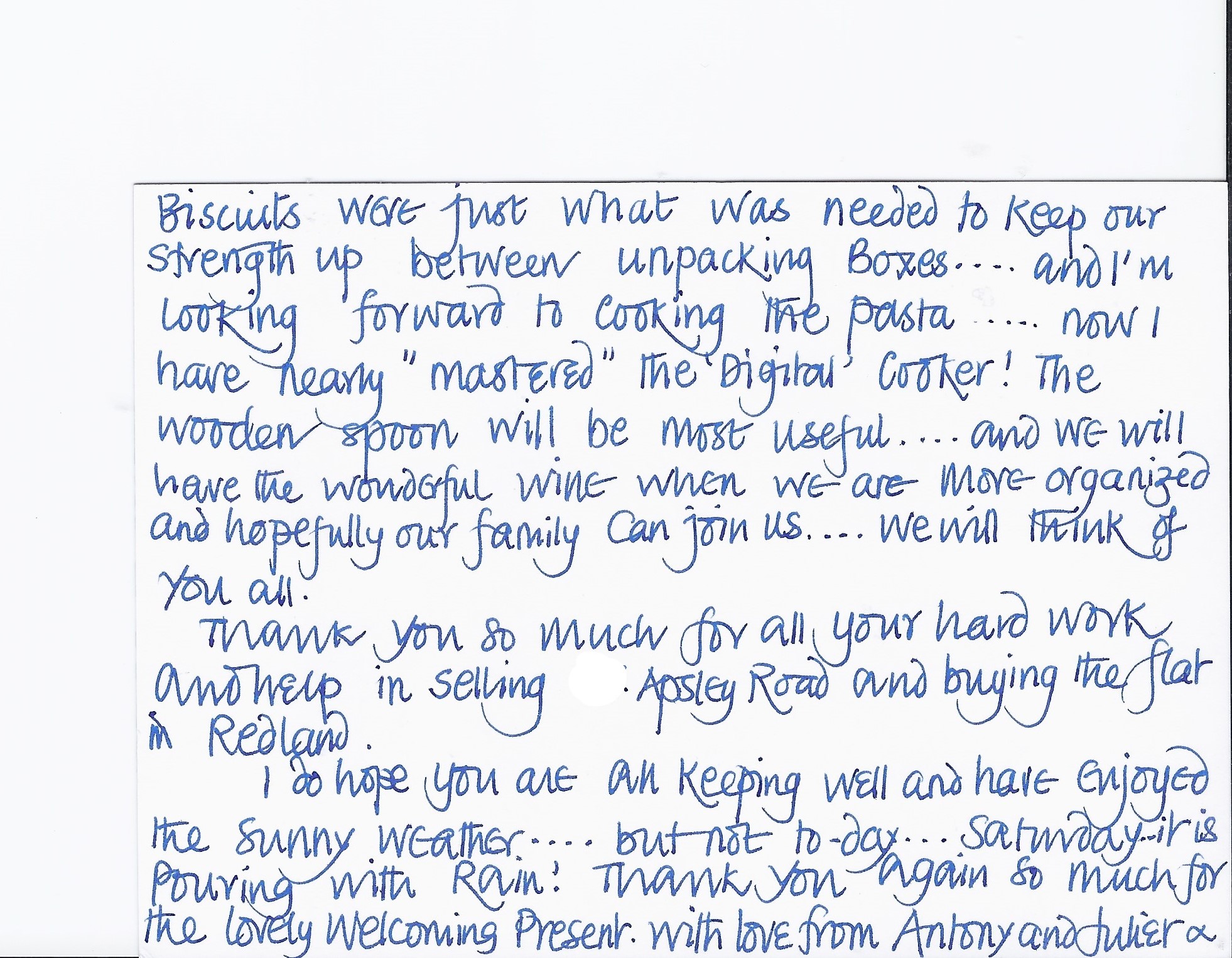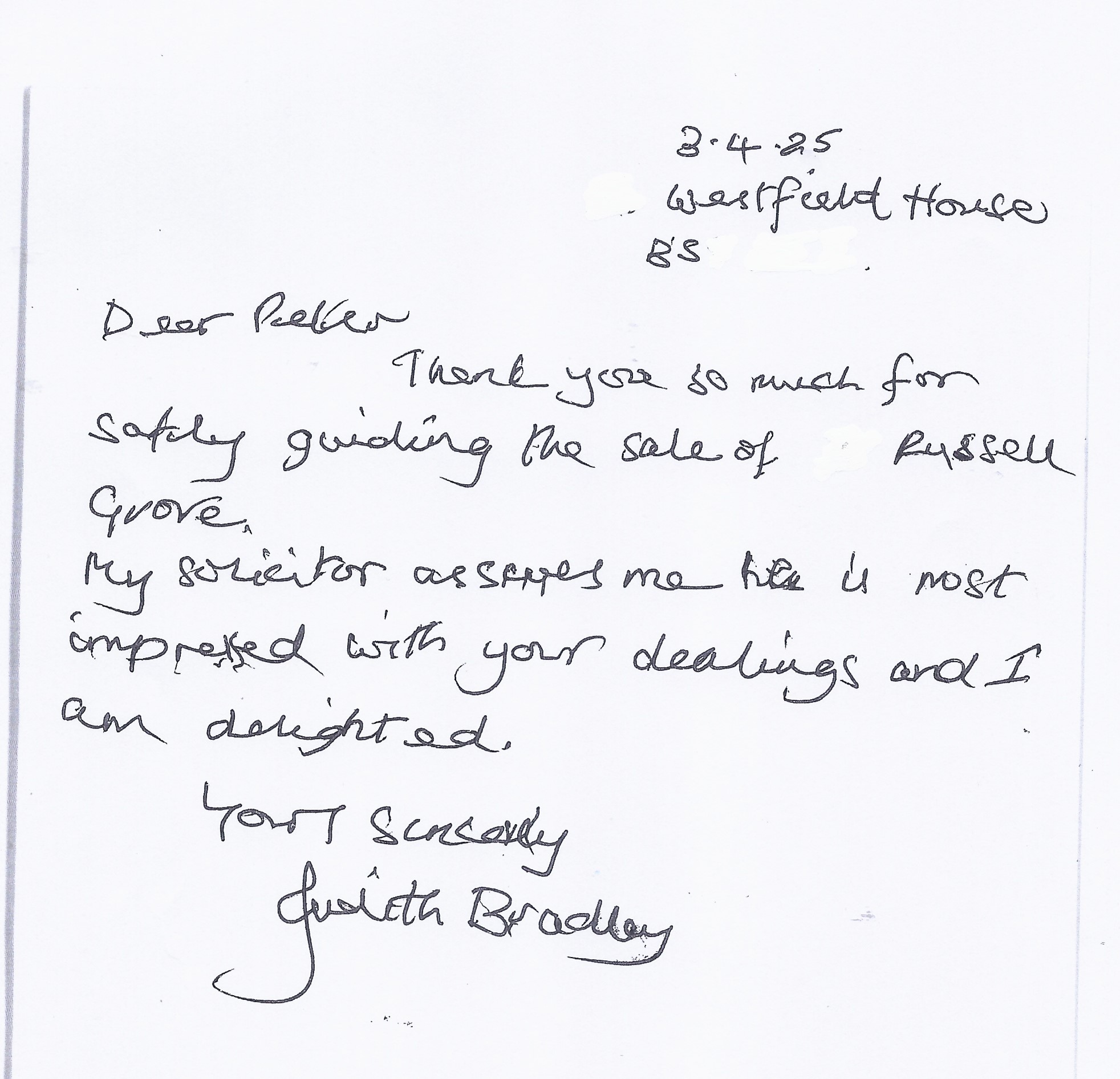 You are welcome to inspect any of the original letters, cards and emails which are held on file in our office or speak to any one of our clients – with their permission – regarding their personal experience of moving with Richard Harding. These testimonials date from the present back to our early years so that you can see we have consistently maintained high standards.