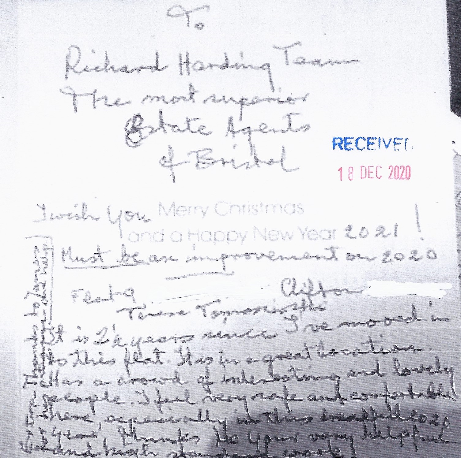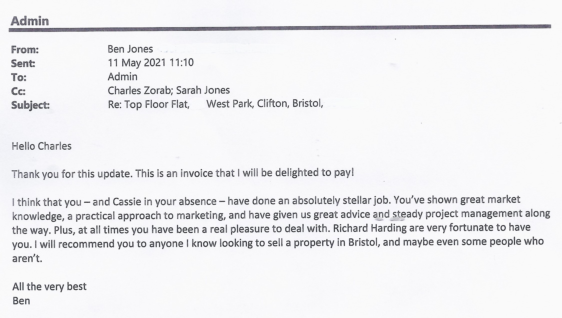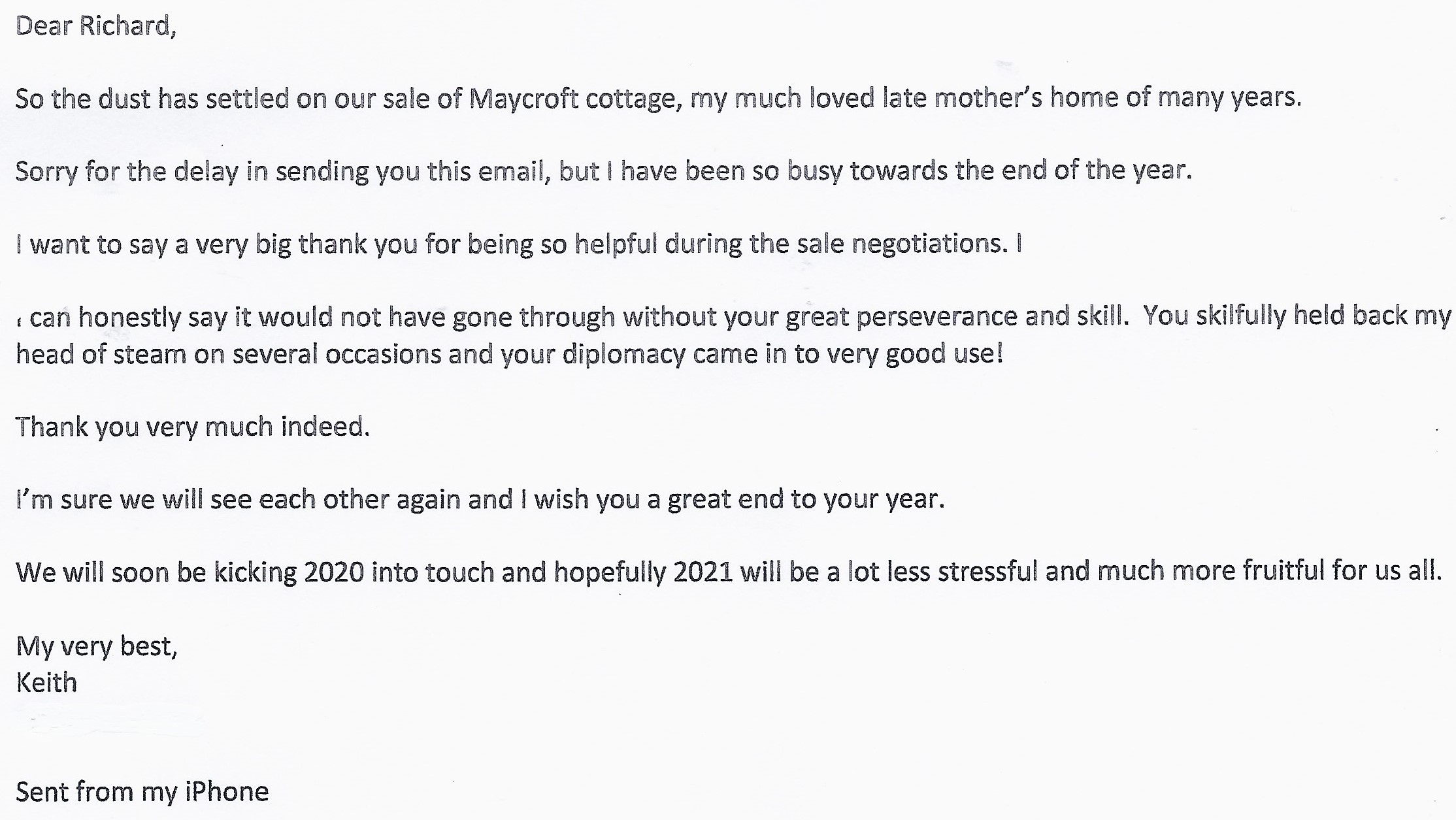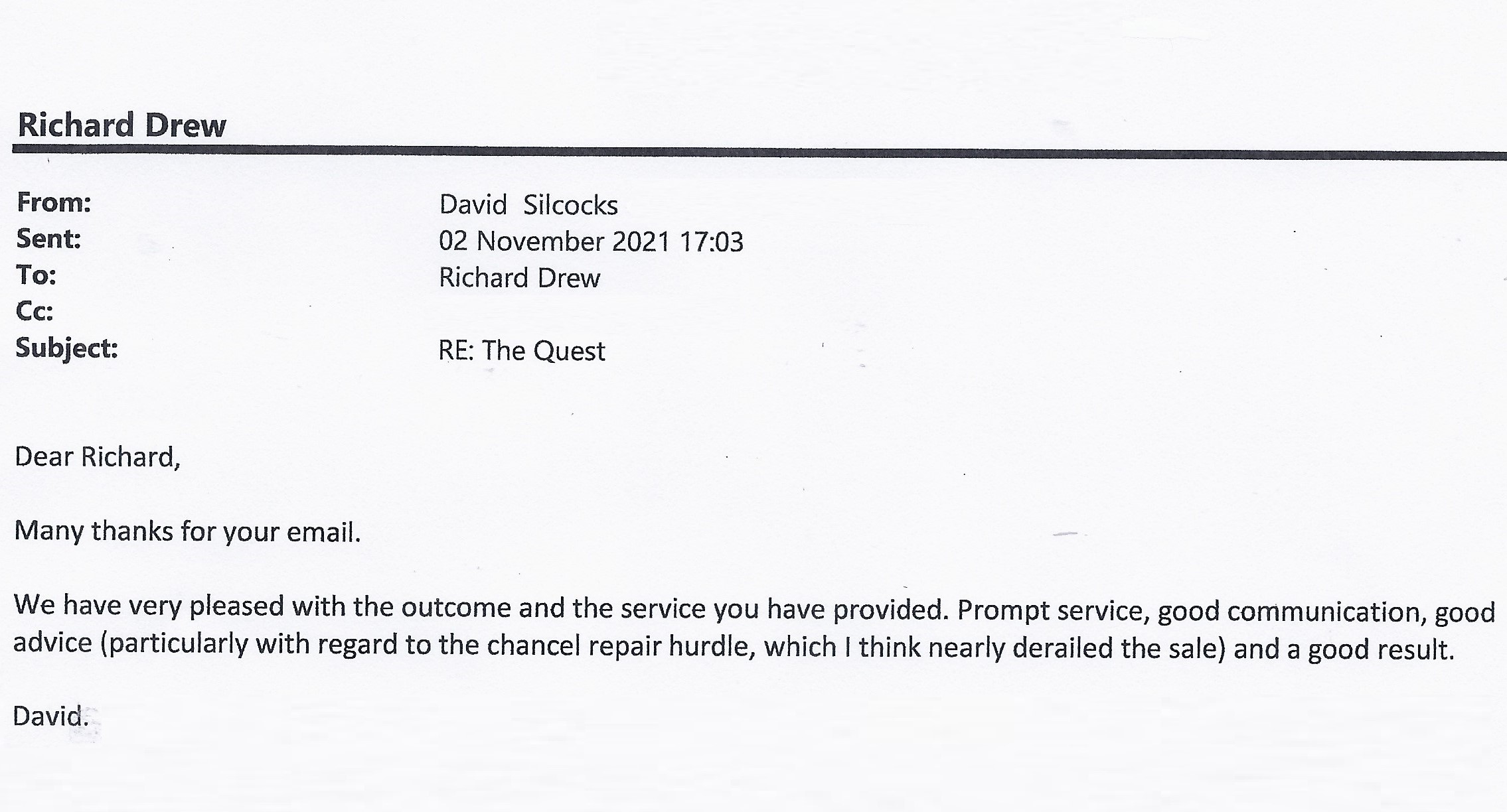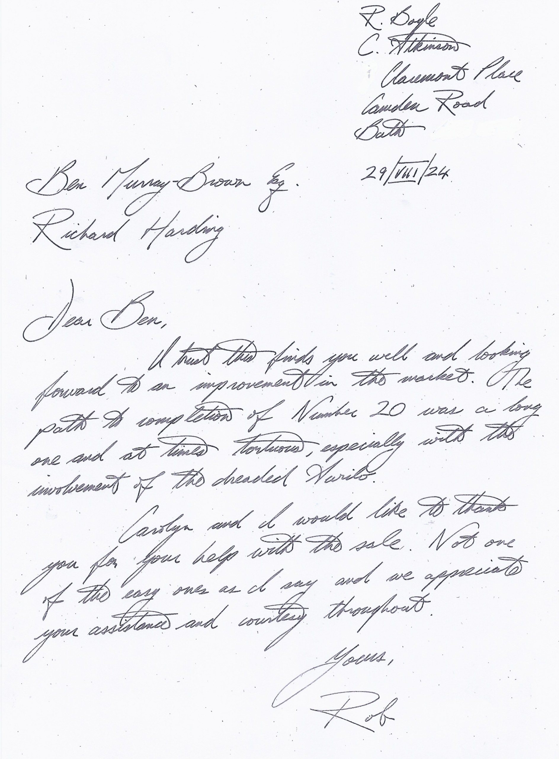 You are welcome to inspect any of the original letters, cards and emails which are held on file in our office or speak to any one of our clients – with their permission – regarding their personal experience of moving with Richard Harding. These testimonials date from the present back to our early years so that you can see we have consistently maintained high standards.