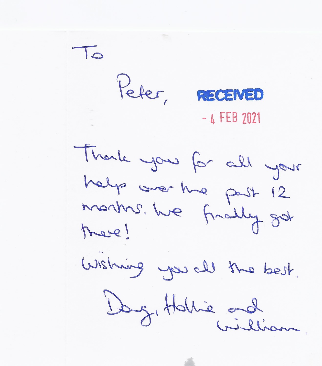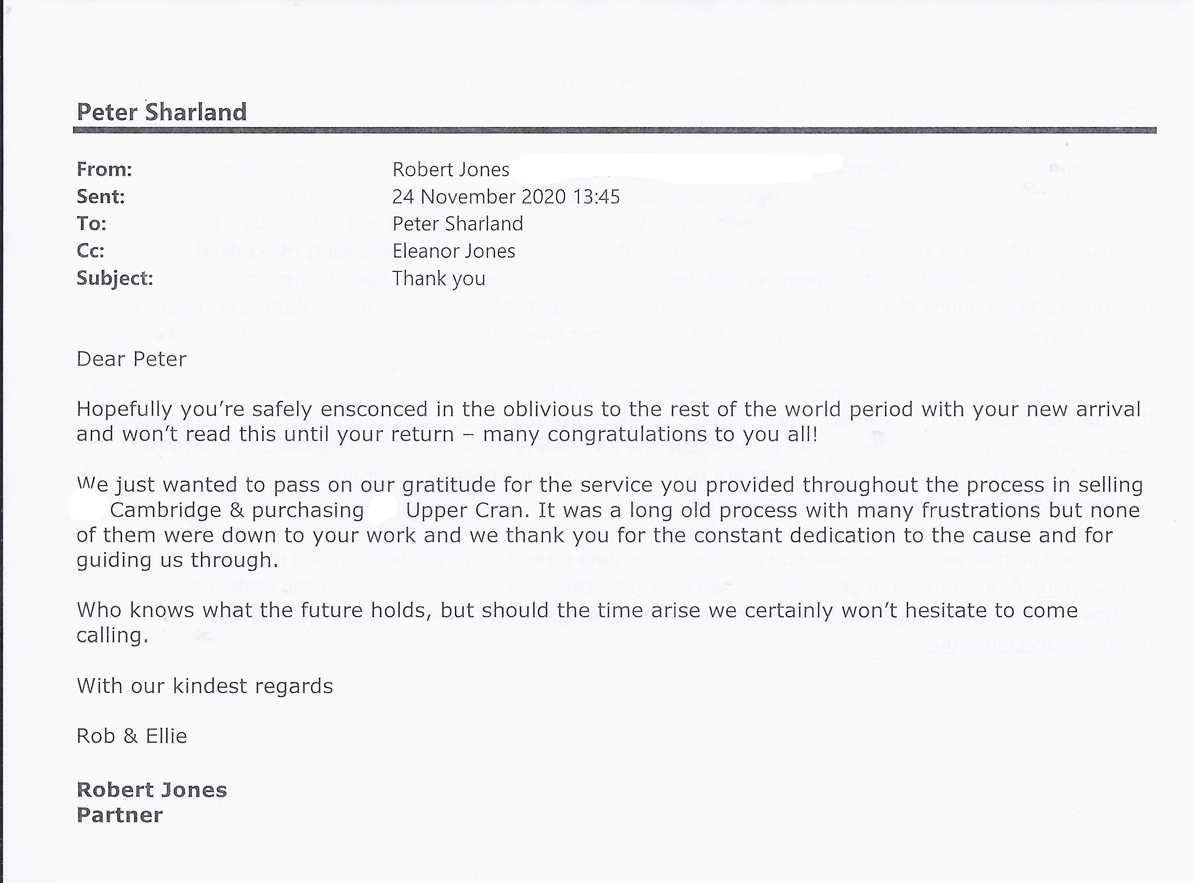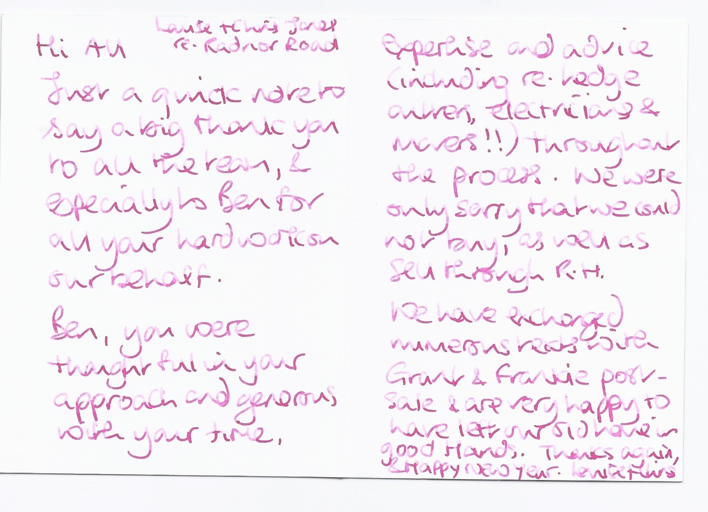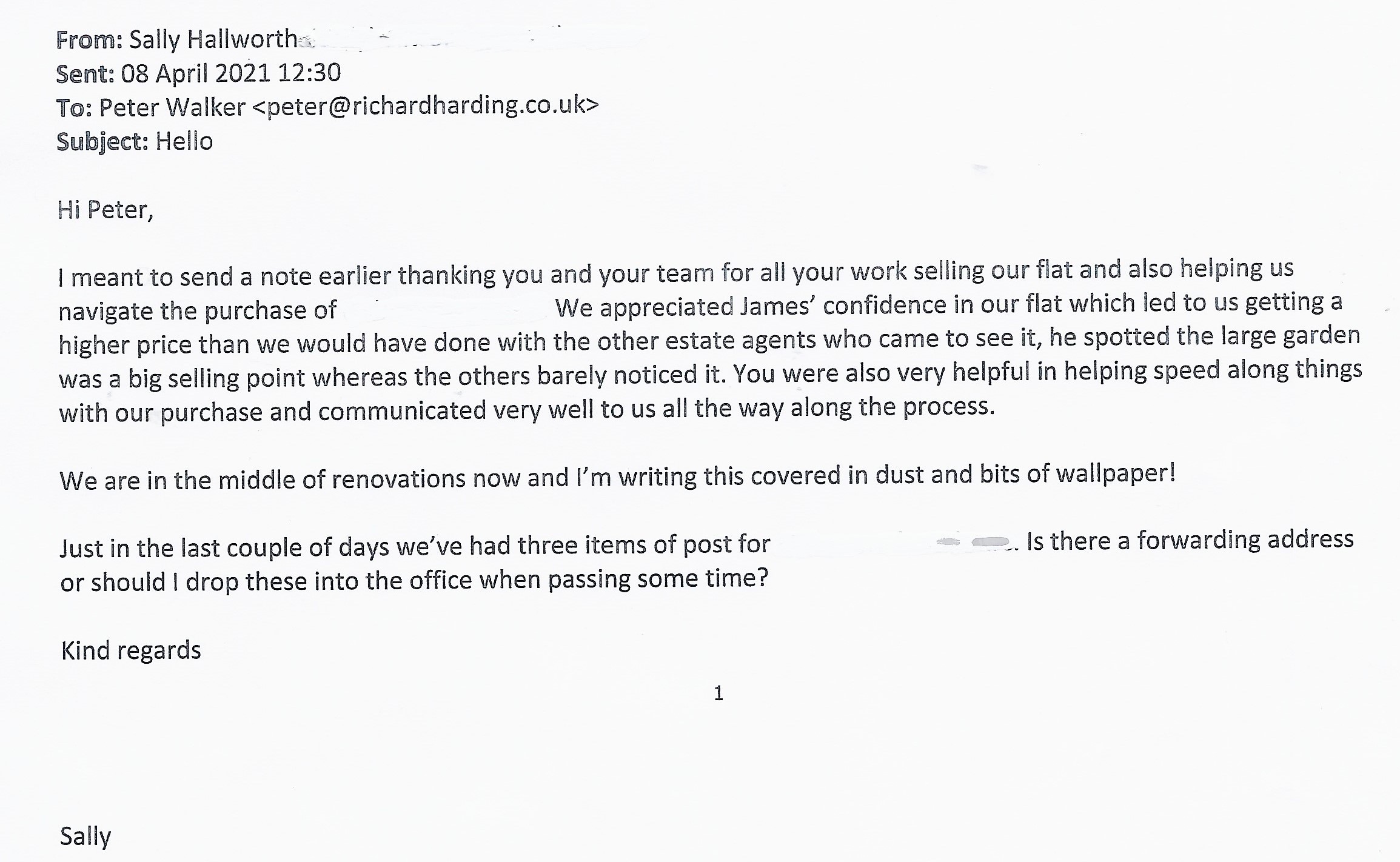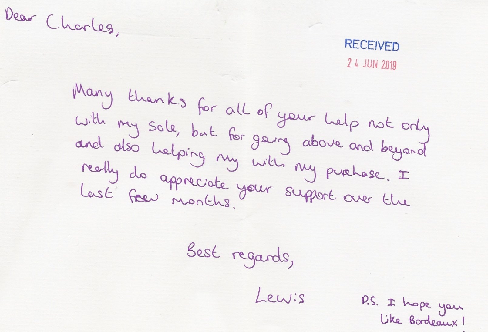 You are welcome to inspect any of the original letters, cards and emails which are held on file in our office or speak to any one of our clients – with their permission – regarding their personal experience of moving with Richard Harding. These testimonials date from the present back to our early years so that you can see we have consistently maintained high standards.
