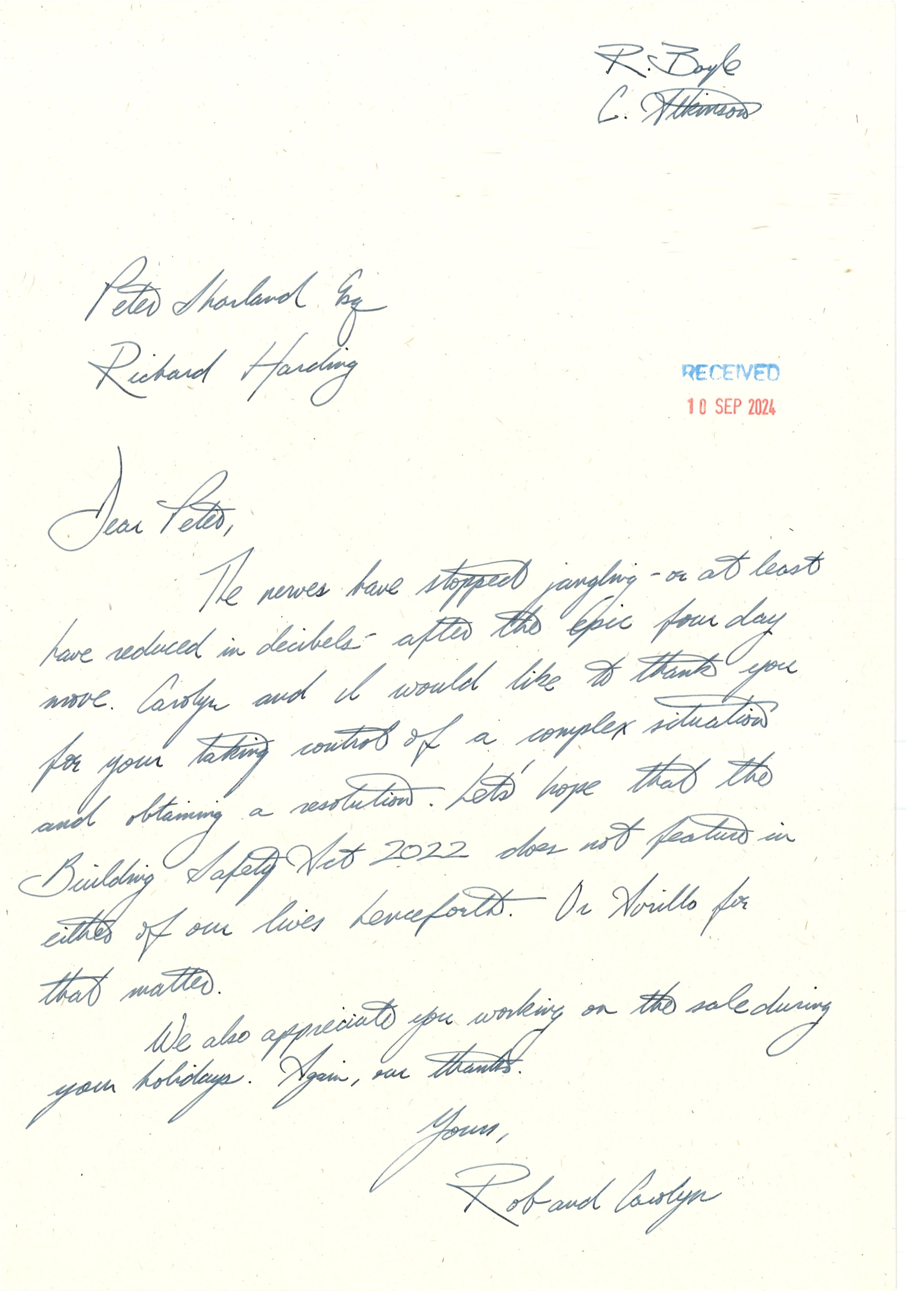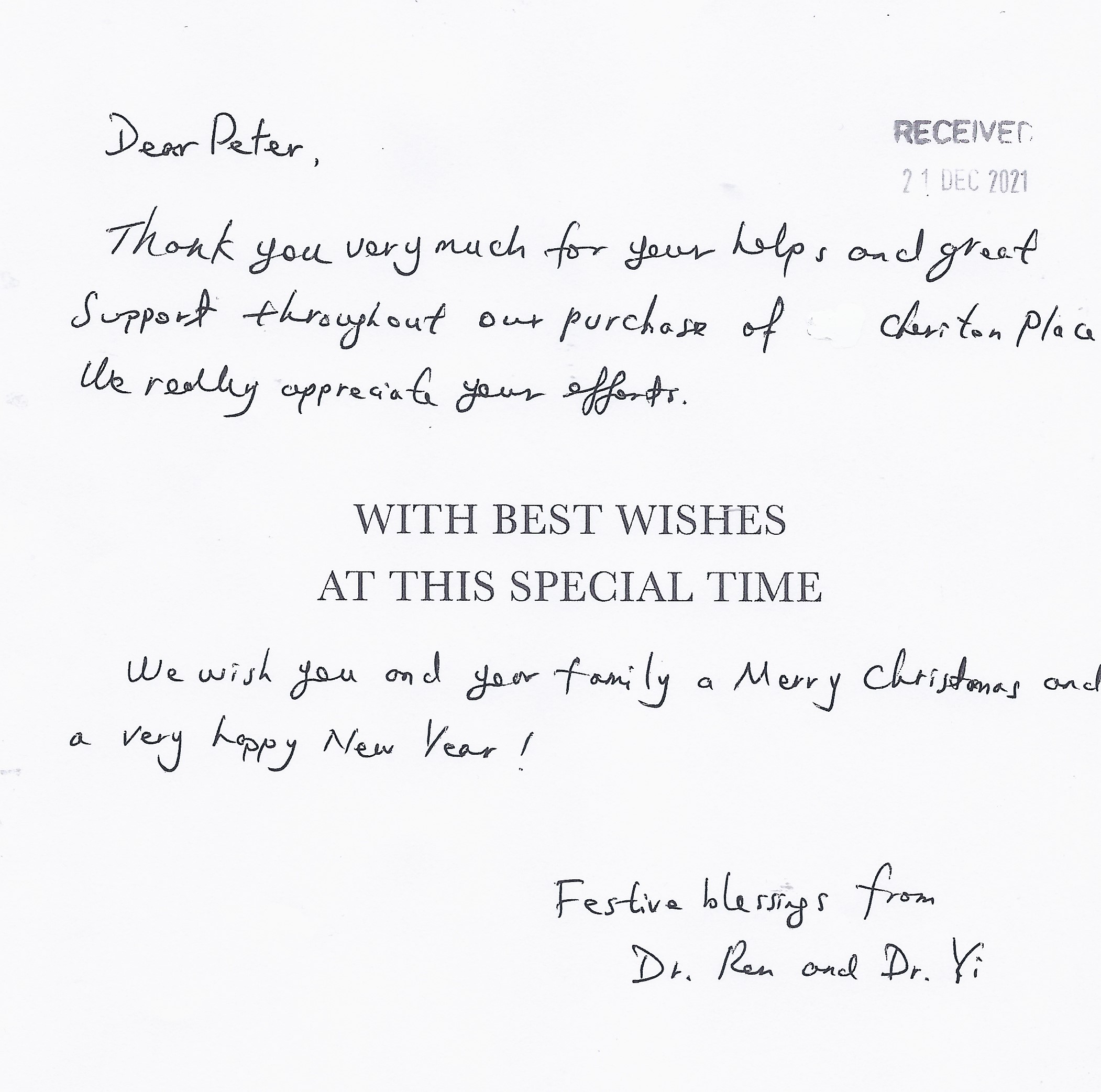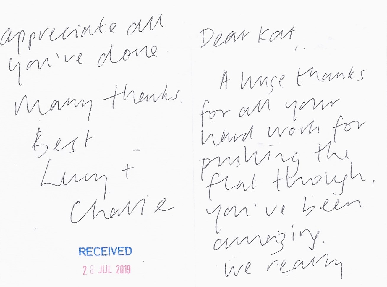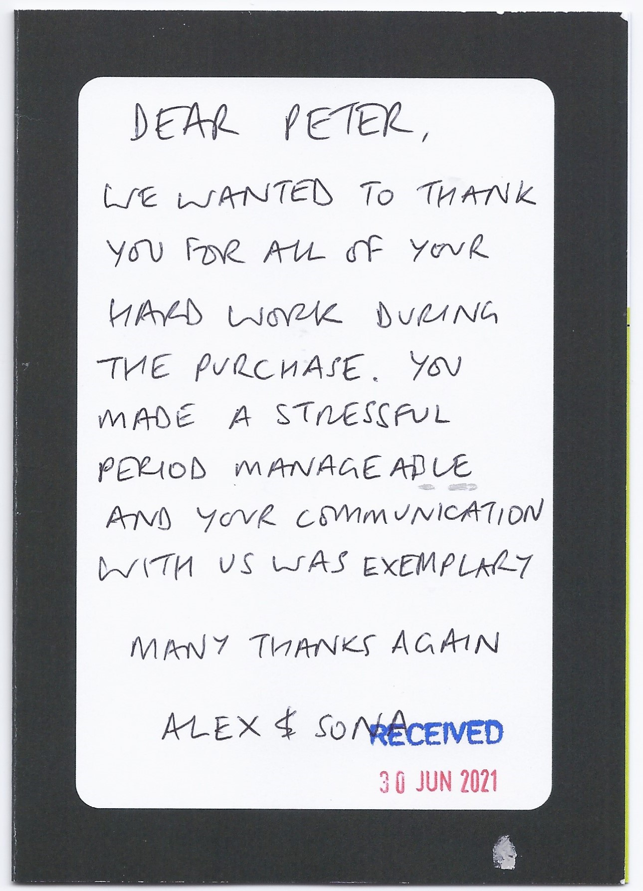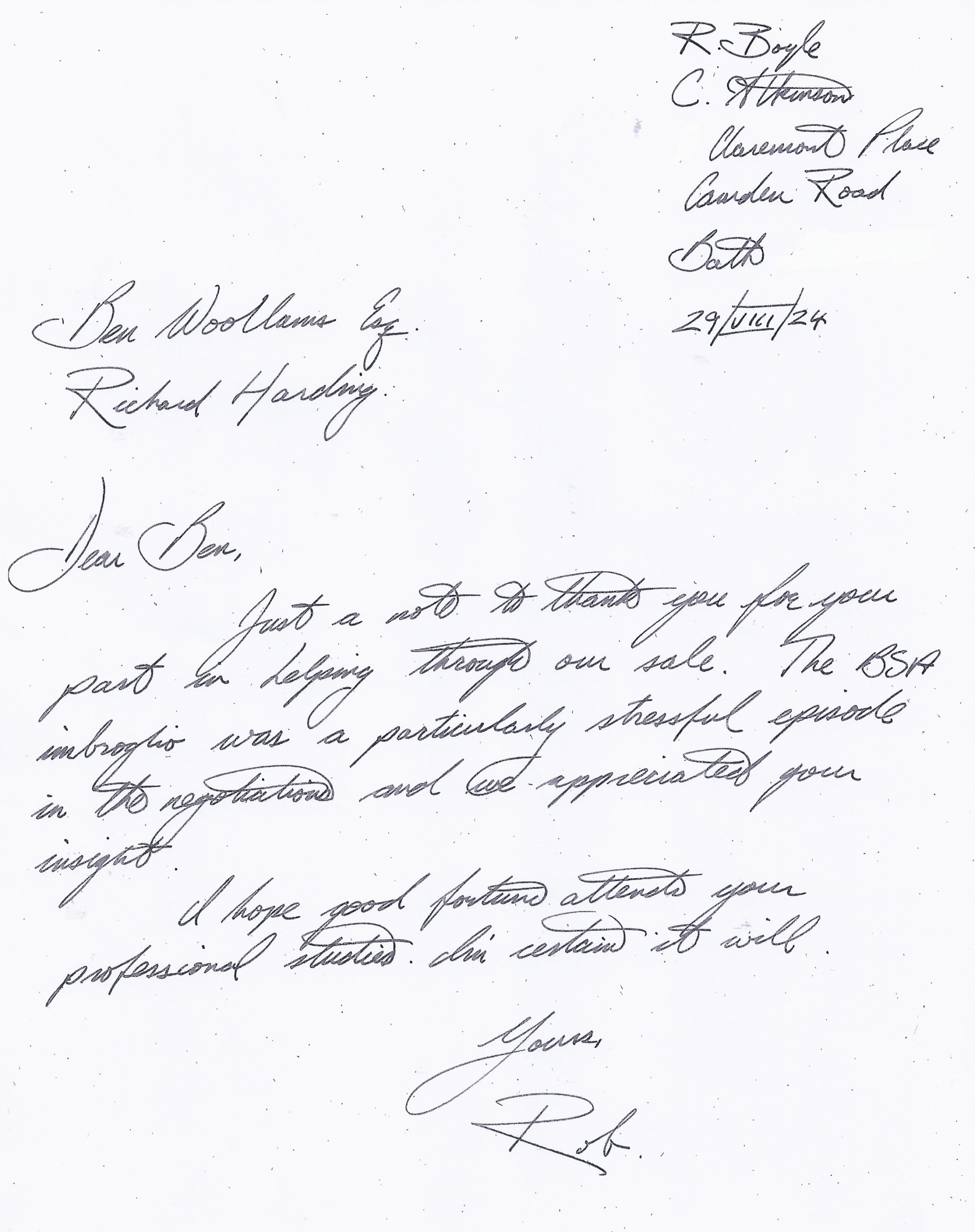 You are welcome to inspect any of the original letters, cards and emails which are held on file in our office or speak to any one of our clients – with their permission – regarding their personal experience of moving with Richard Harding. These testimonials date from the present back to our early years so that you can see we have consistently maintained high standards.