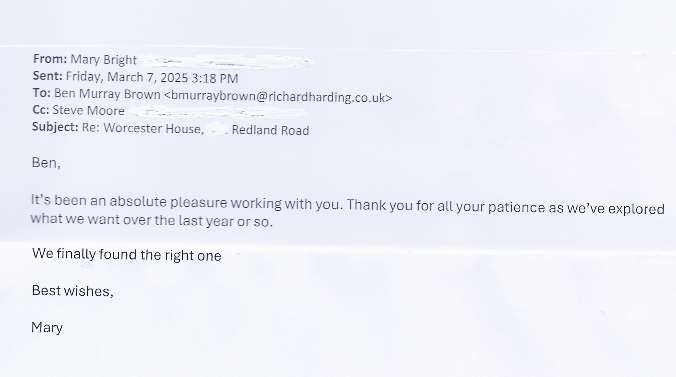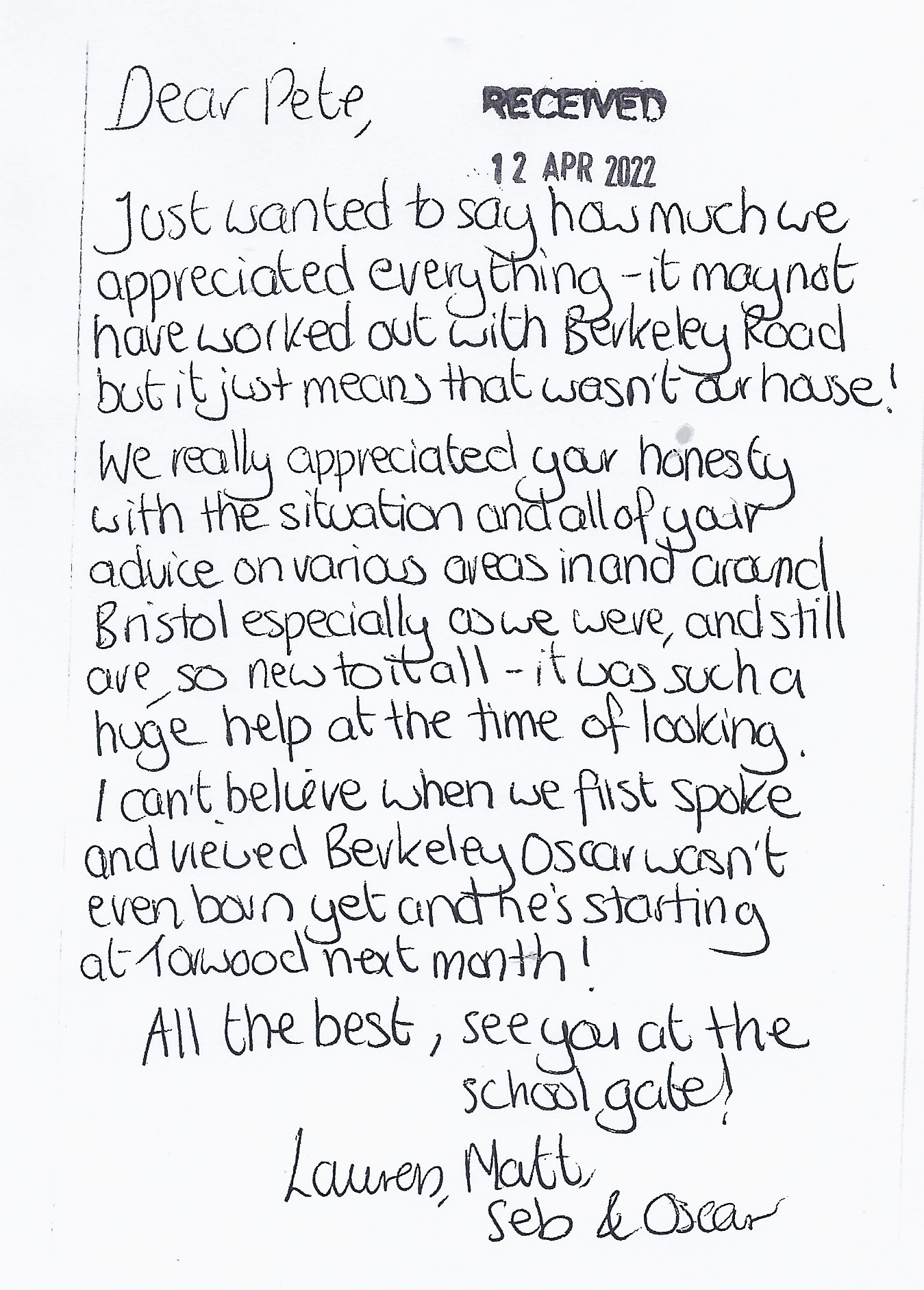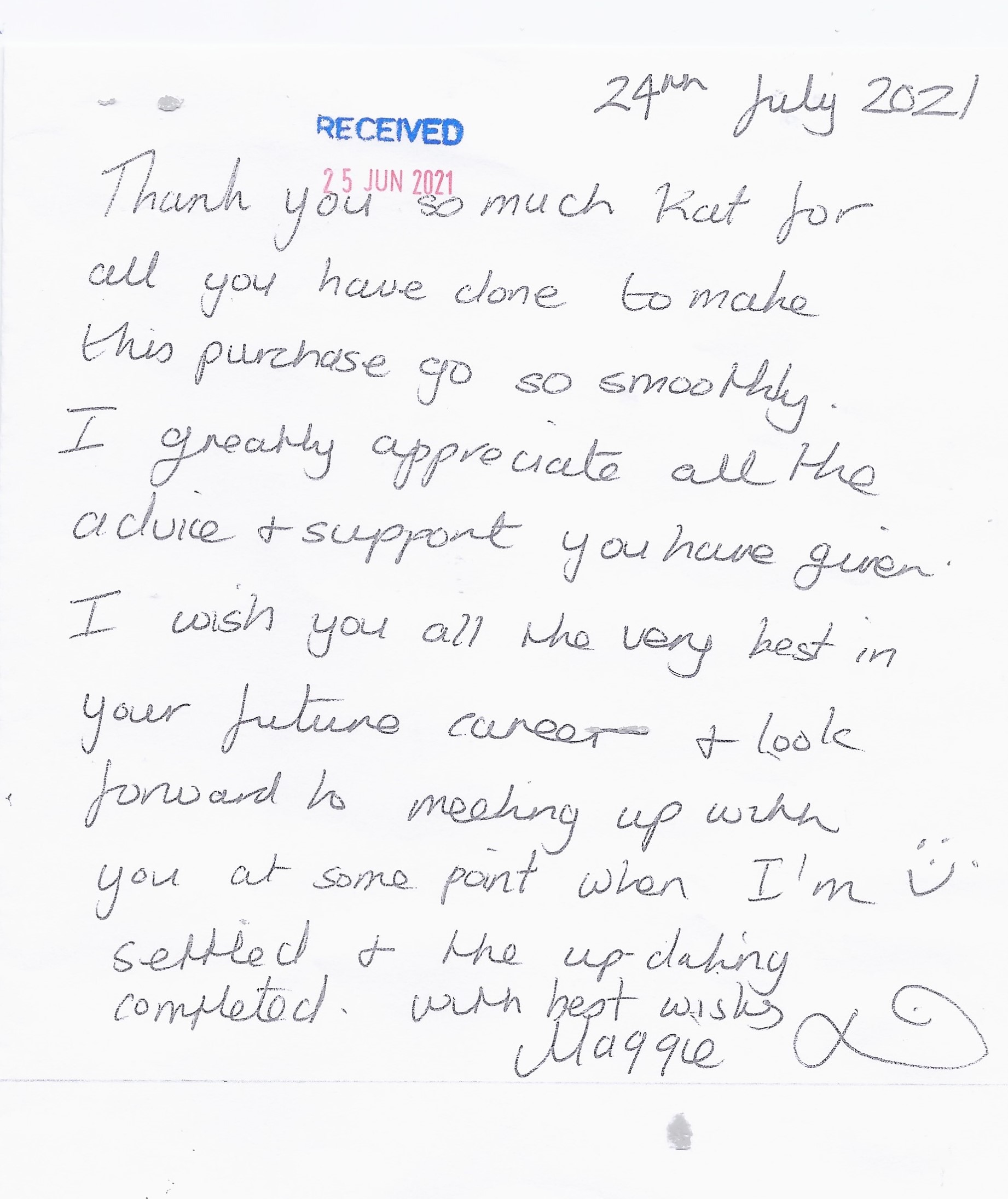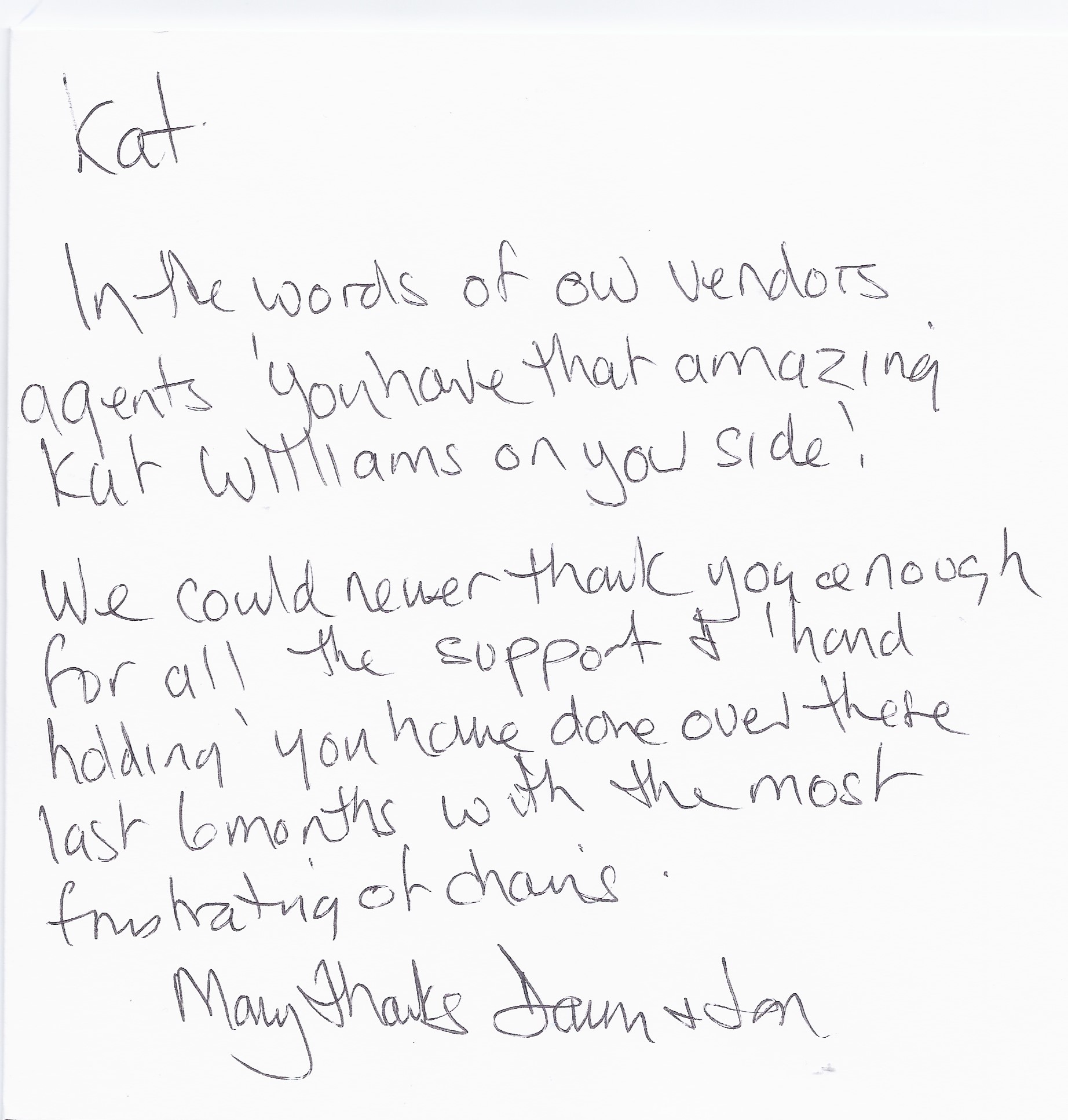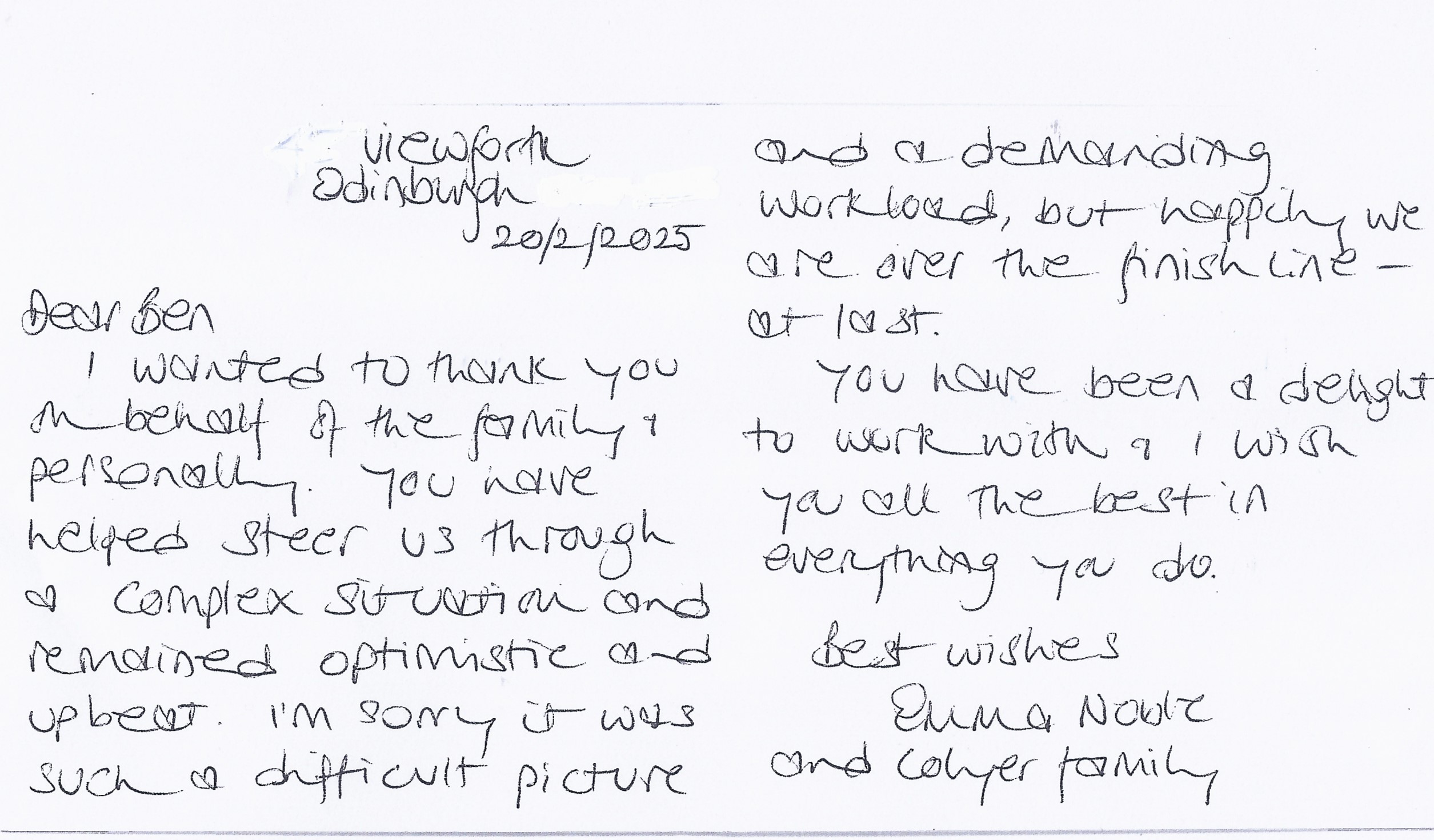 You are welcome to inspect any of the original letters, cards and emails which are held on file in our office or speak to any one of our clients – with their permission – regarding their personal experience of moving with Richard Harding. These testimonials date from the present back to our early years so that you can see we have consistently maintained high standards.