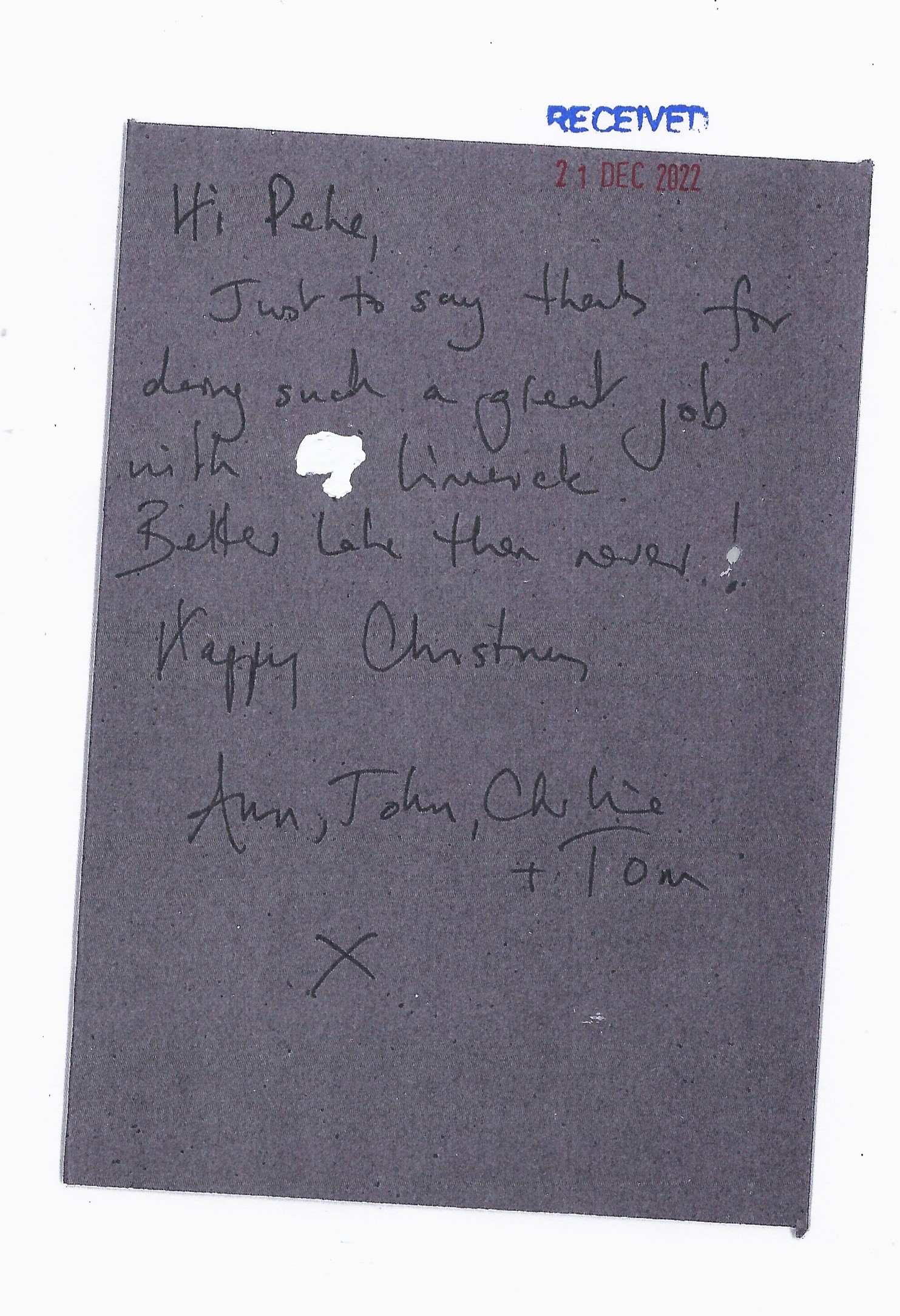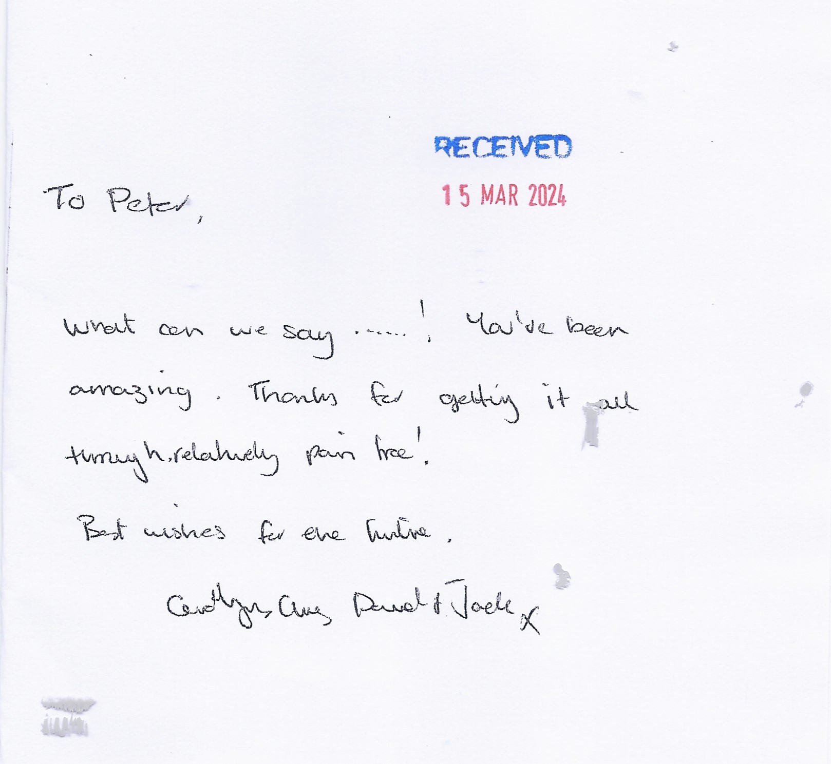 Please read what people say about us in the many letters, cards and emails of commendation, appreciation, pleasure and surprise that appear below. These are just some of the comments we have received…